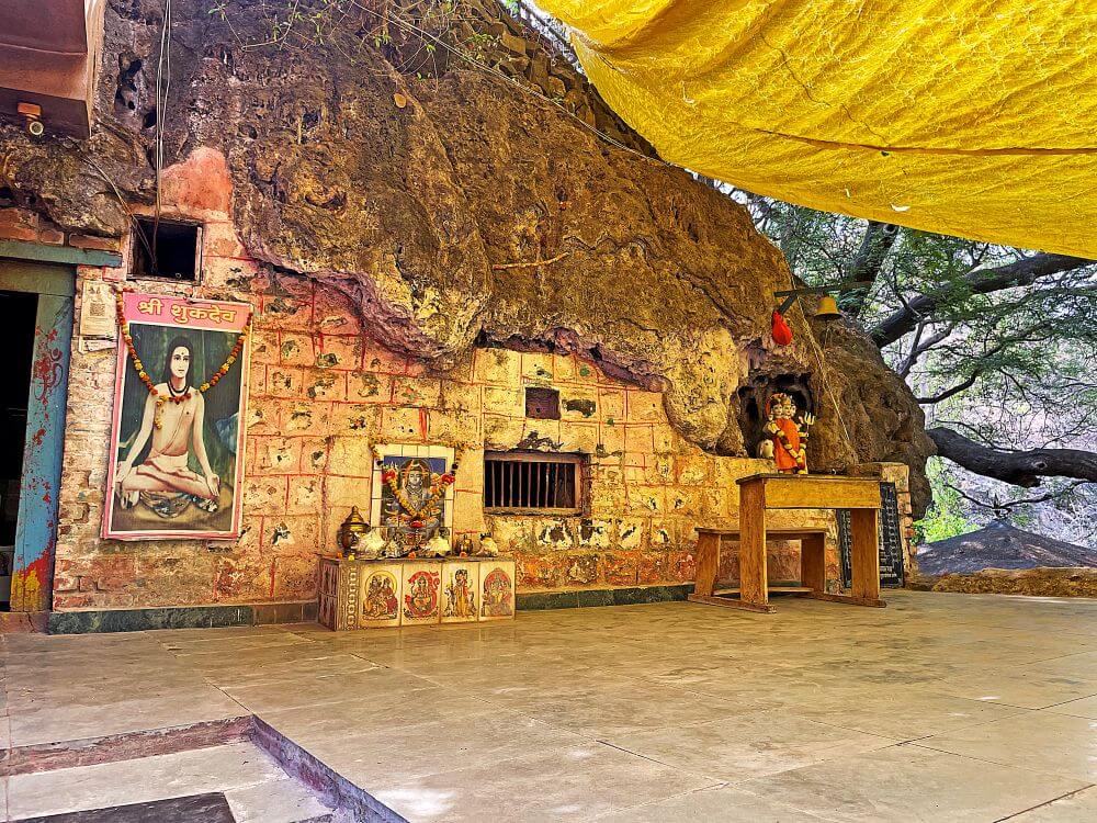हे मंदिर सातशे ते आठशे वर्षे प्राचीन असले तरी येथील गुहा हजारो वर्षांपूर्वीच्या असल्याचे सांगितले जाते. शुकाचार्यांना कशाचाही मोह, आसक्ती नव्हती. ते सदेही असूनही विदेही अवस्थेत होते. त्यामूळे स्वर्गातील अप्सराही त्यांच्यासमोर निसंकोच वावरत असत. असे सांगितले जाते की शुकाचार्यांनी येथील गुहेत परिक्षित राजाला संक्षिप्त स्वरूपात भागवत पुराण सांगितले होते. मंदिराची अख्यायिका अशी की शुकाचार्यांचे वाढते तपोबल पाहून इंद्राला आपले आसन डळमळीत होऊ लागल्याची शंका वाटली. इंद्राने शुकाचार्यांचा तपोभंग करण्यासाठी येथील गुहेत अप्सरा पाठवल्या. शुकाचार्यांना अंतर्ज्ञानाने इंद्राच्या कपटाची जाणीव झाल्यानंतर त्यांनी आपला अवतार आवरता घेण्याचे ठरवले व येथील गुहांमधील खडकात ते अंतर्धान पावले. याच ठिकाणी हे मंदिर बांधले असल्याचे सांगितले जाते.