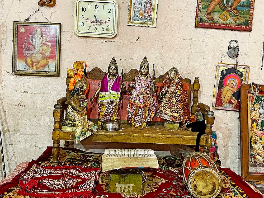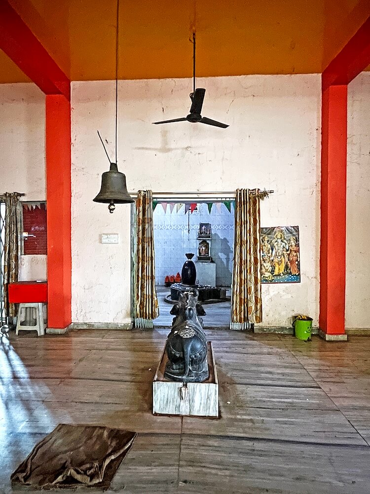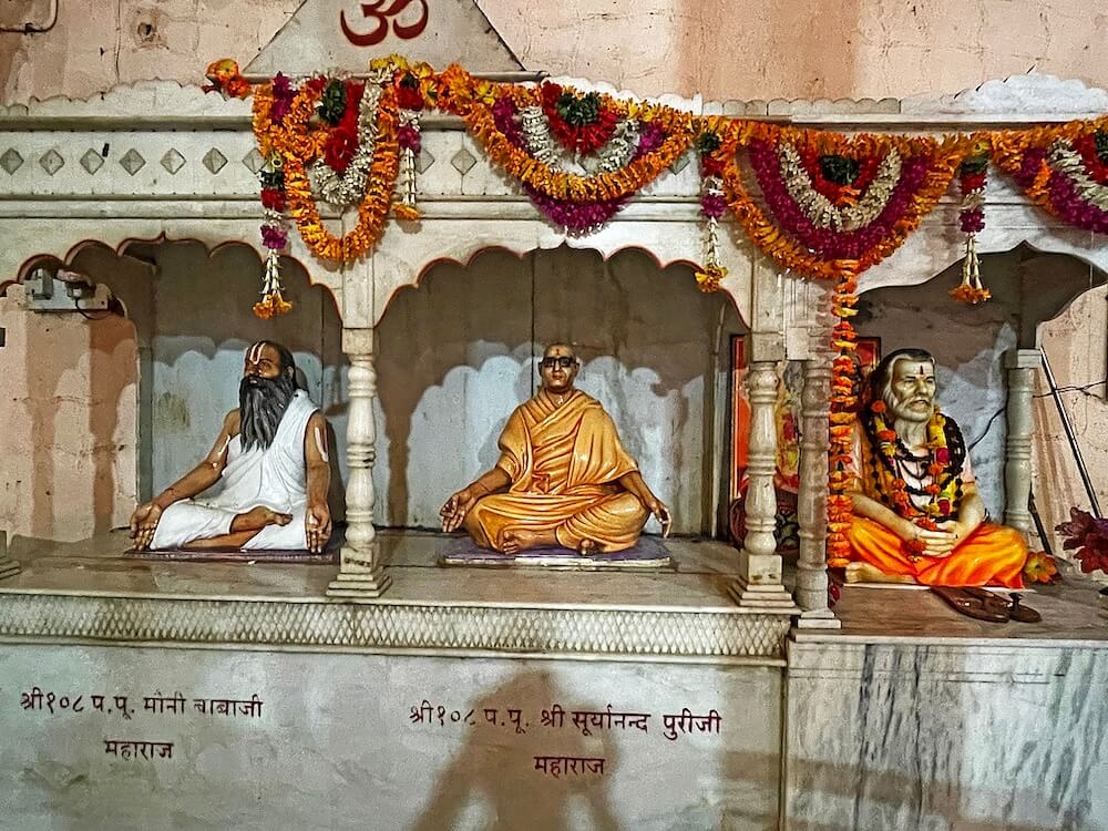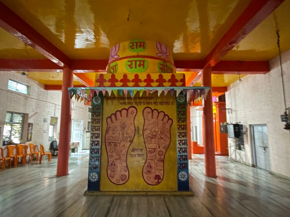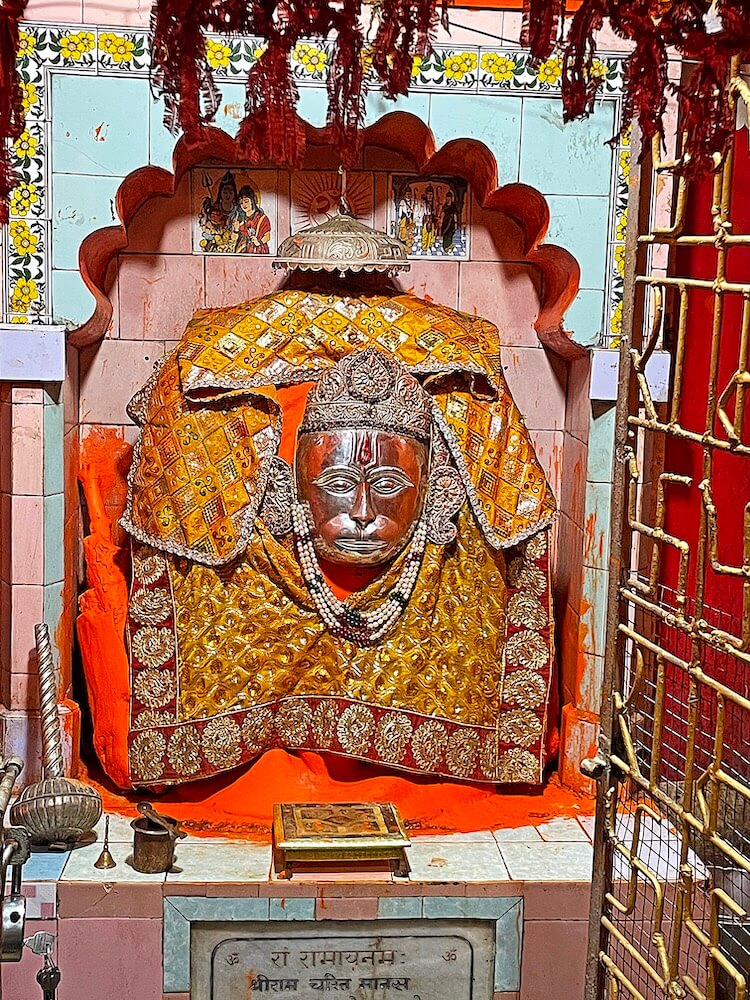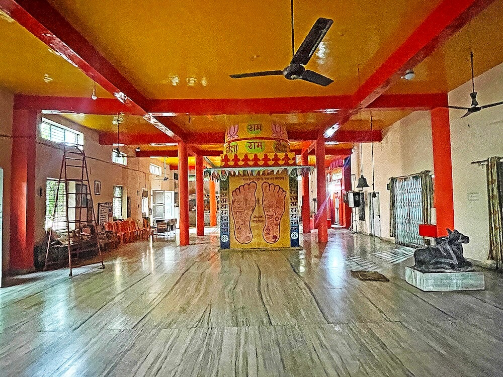 सभामंडपात मध्यभागी हनुमानाचे मुख्य गर्भगृह आहे. या गर्भगृहाच्या एका भिंतीवर पादुकांचे चित्र आहे. गर्भगृहात वज्रपिठावर असलेल्या हनुमानाच्या शेंदूरचर्चित मूर्तीवर मुखवटा आहे. या गर्भगृहाच्या समोर रामदरबार आहे. त्यात श्रीराम, सीता व लक्ष्मण यांच्या संगमरवरी मूर्ती आहेत. याशिवाय श्रीराम लक्ष्मण व सीता यांच्या धातूच्या मूर्तीही येथे आहेत. उत्सवप्रसंगी त्या पालखीत ठेवल्या जातात. मंदिरात राधा-कृष्णाचेही मंदिर आहे. या मंदिराच्या परिसरात येथे तपस्या करणाऱ्या मौनीबाबा महाराज, सूर्यानंद पुरी महाराज आदींच्या मूर्तीही आहेत. या मंदिराच्या छतावर एकूण पाच शिखरे आहेत. मंदिराच्या परिसरात असलेल्या पाकशाळेजवळ एक जुने जाते आहे. या जात्यावर आजही धान्य दळले जाते. त्याचा उपयोग मंदिरात नैवद्य बनवण्यासाठी केला जातो.