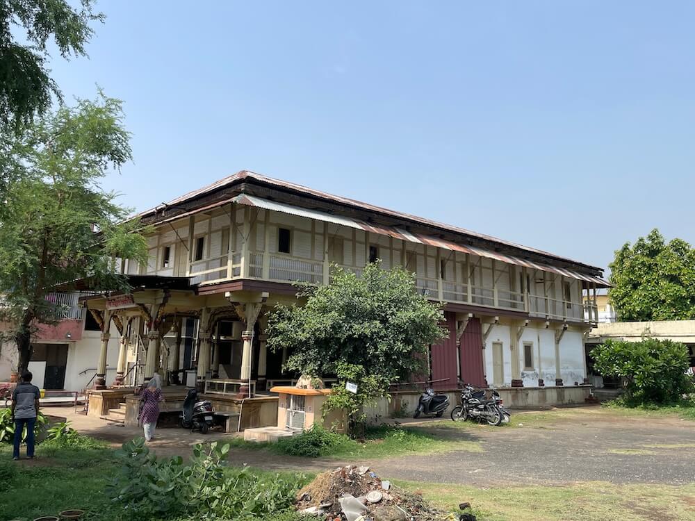 The temple retains its original 150-year-old structure with only minor repairs over time. It once housed students, mostly from Maharashtra, particularly Khandesh, who lived on alms (madhukari) and studied here. Many later settled in Vadodara. The temple is located behind Khanderao Market, near Siddhanath Lake. The two-storied building, resembling a Peshwa mansion, has predominantly wooden interiors. The layout includes an entrance porch (mukhmandap), an assembly hall (sabhamandap), an antechamber (antaral) and a sanctum (garbhagriha). Five steps lead to the entrance hall, which is spacious, open and supported by carved wooden pillars and ornate arches.