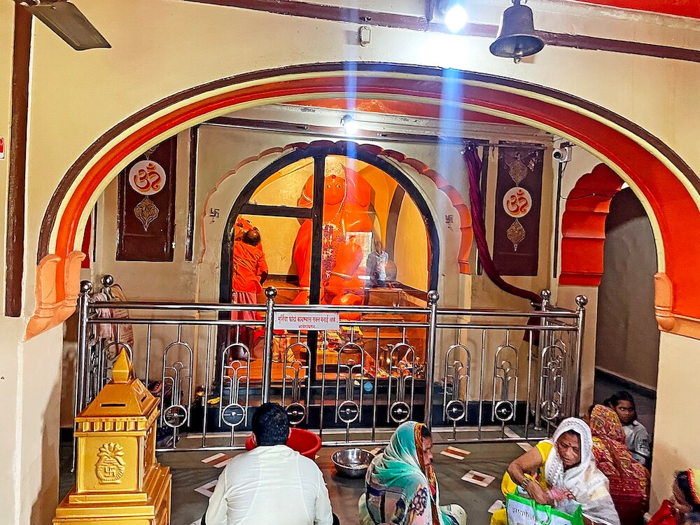 मंदिराच्या संकुलाच्या सुरुवातीलाच जटाशंकर महादेवाचे छोटे शिवमंदिर लागते. येथील शिवलिंगावर गोमुखातून अभिषेक होत असतो. येथून काही पायऱ्या चढून वारी हनुमान मंदिराच्या प्रवेशद्वाराजवळ आपण पोचतो. प्रवेशद्वाराजवळ दोन्ही बाजूंना द्वारपाल आहेत. आटोपशीर सभामंडपात मध्यभागी प्रदक्षिणा मार्ग सोडून गर्भगृहाची रचना आहे. येथील गर्भगृहात हनुमानाची १५ फूट उंचीची शेंदूरचर्चित मूर्ती आहे. सुवर्णमुकुट परिधान केलेल्या या उभ्या मूर्तीच्या डावीकडे गदा आहे. या मूर्तीच्या डाव्या बाजूला गणेशाची शेंदूरचर्चित मूर्ती आहे. गर्भगृहाच्या उजवीकडील देवळीत समर्थ रामदास स्वामींची मूर्ती आहे. मुख्य मंदिराच्या गर्भगृहावर आकाराने लहान होणारे तीन चौकोनी स्तरांचे शिखर आहे.