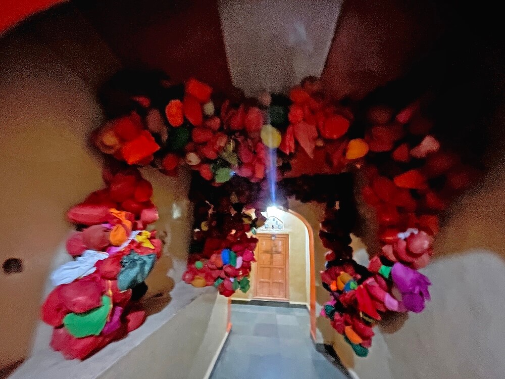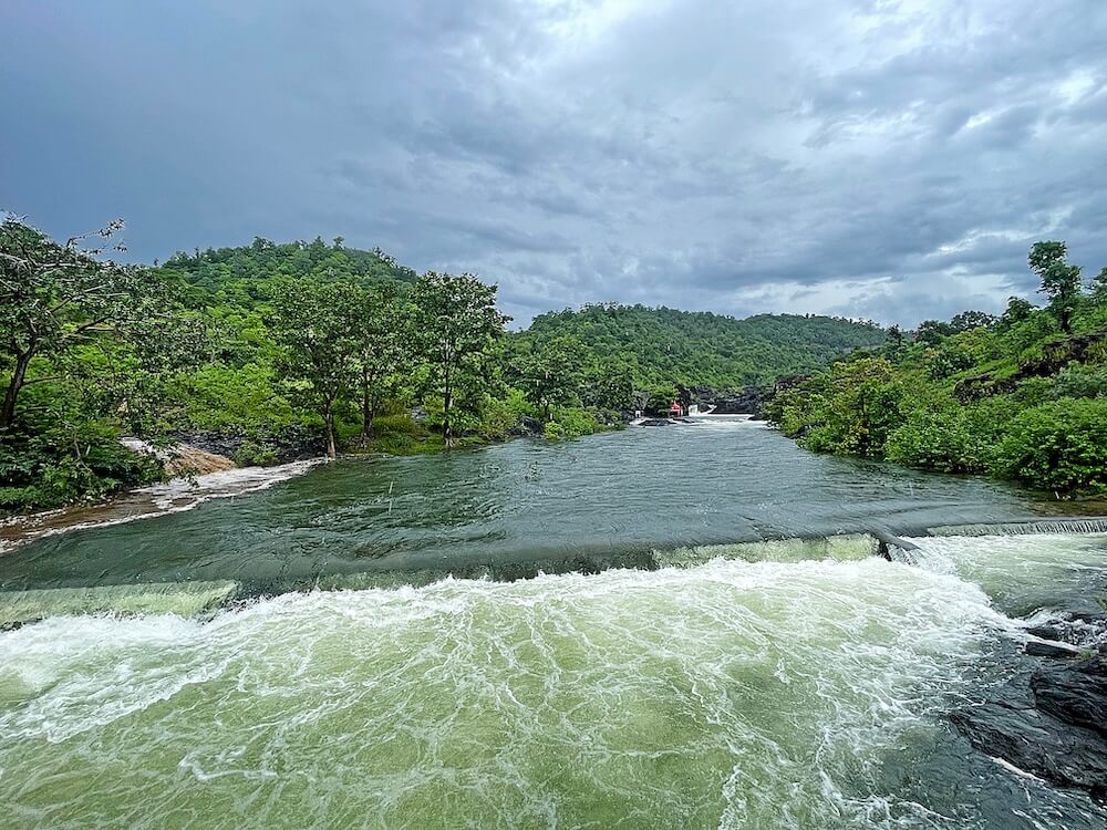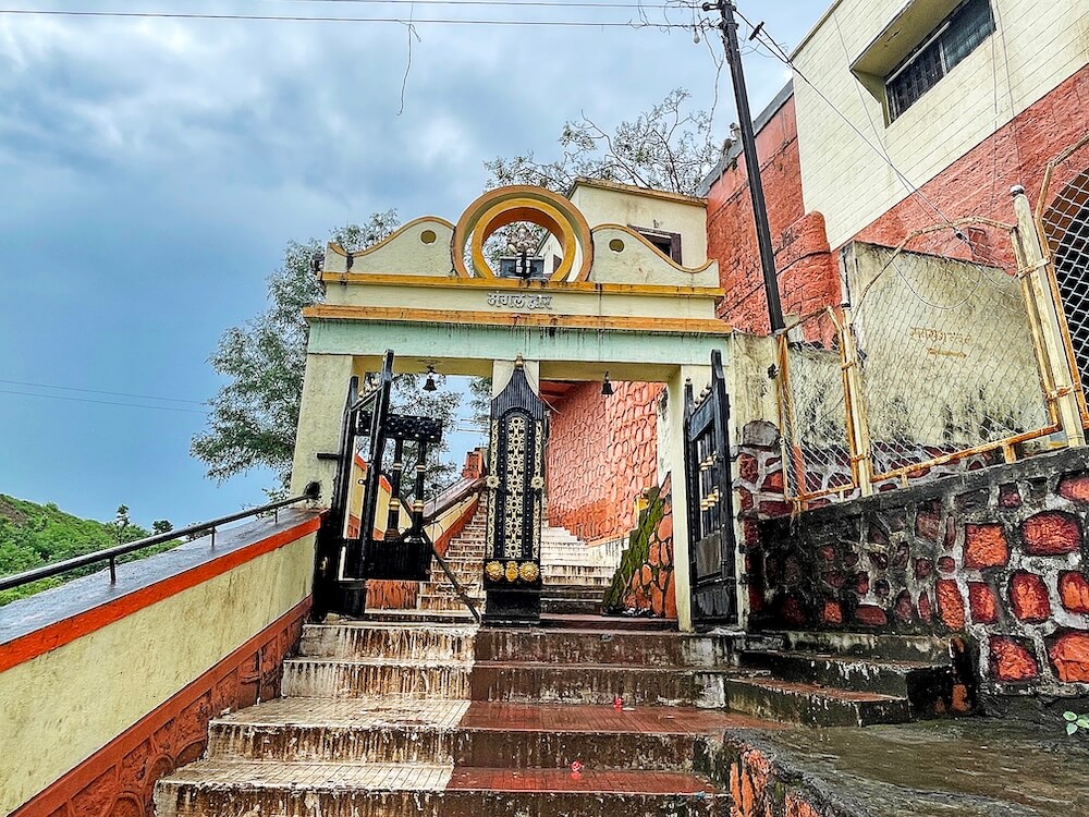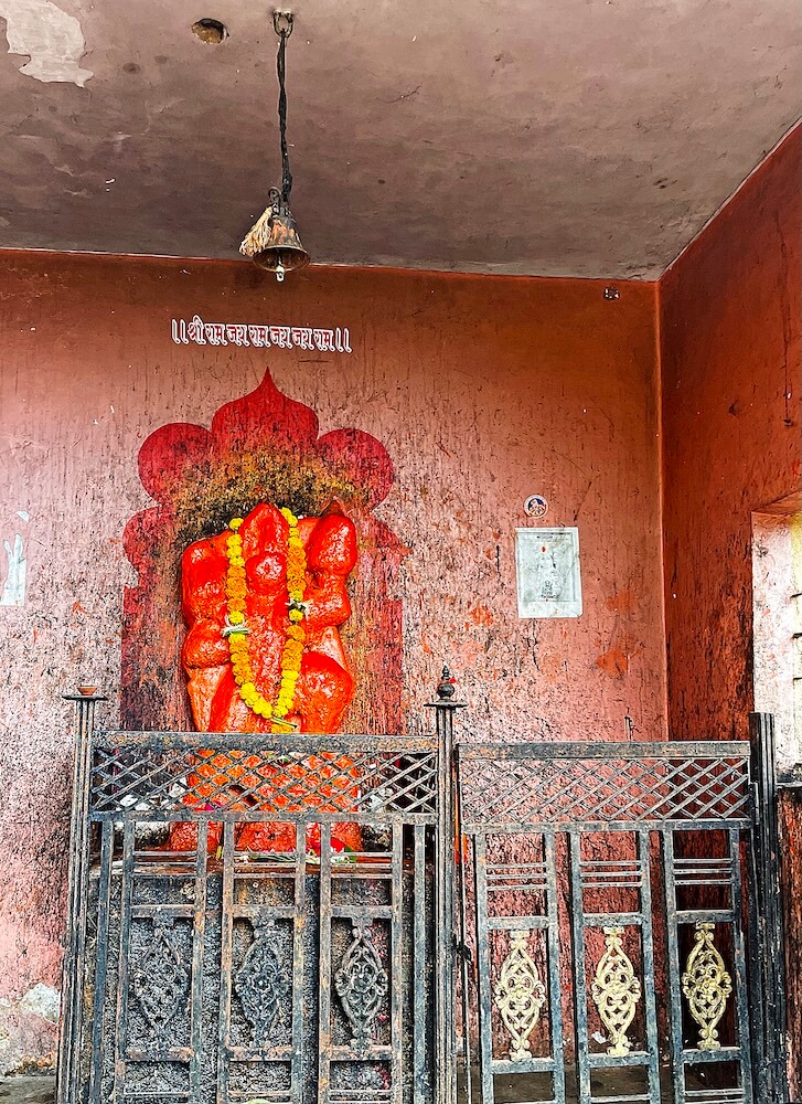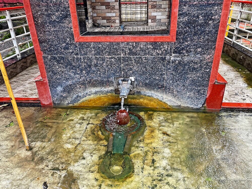 गावातील मंदिराच्या कमानीपासून या मंदिरात येण्यासाठी सुमारे १०० पायऱ्या उतराव्या लागतात. पायऱ्या संपल्यानंतर हनुमान सागर धरणातून येणाऱ्या पाण्यामूळे येथे पुल बांधलेला आहे. या मंदिराकडे येताना नदीच्या वरच्या बाजूला खडकांमध्ये गरम पाण्याचे एक कुंड आहे. येथील गोमुखातून वर्षभर गरम पाणी बाहेर पडते. हे पाणी पिण्यासाठी तसेच स्वयंपाक करण्यासाठीही वापरले जाते. या गोमुखाजवळ पूर्वी एक शिलालेख होता. मात्र, येथे झालेल्या सिमेंटच्या बांधकामामुळे तो अस्पष्ट झाला आहे.