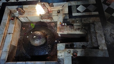 गर्भगृहाचे प्रवेशद्वार दगडी आहे. द्वारचौकटीच्या ललाटबिंबस्थानी गणेशाची मूर्ती कोरलेली आहे. उंबरठ्यावर कीर्तिमुख आहे. चौकटीच्या बाजूच्या मोठ्या दगडी स्तंभांच्या वरच्या भागात नक्षीकाम केलेले आहे. उतरांग भागात मोठे कोरीव देवकोष्ठक आहे, ज्यामध्ये भैरवनाथाची उभी मूर्ती कोरलेली आहे. गर्भगृह आकाराने मोठे आहे. त्यात मध्यभागी साधारणतः एक फूट खोल चौकोनी भागात काळ्या पाषाणातील मोठे शिवलिंग आहे. शिवलिंगाच्या बाजूला या चौकोनी भागाच्या कठड्यावर पाषाणात घडविलेल्या काही देवतांच्या मूर्ती, तसेच नंदीची मूर्ती आहे. गर्भगृहात असलेल्या एका देवळीत गणरायाची संगमरवरी मूर्ती आहे. गर्भगृहाच्या भिंतीच्या चारही कोपऱ्यांतील कोरीव अर्धस्तंभ, भिंतीवरच्या कमानदार रचना आणि छताच्या घुमटाकार भागावर केलेले नक्षीकाम यांतून या मंदिराचे प्राचीनत्व स्पष्ट होते.