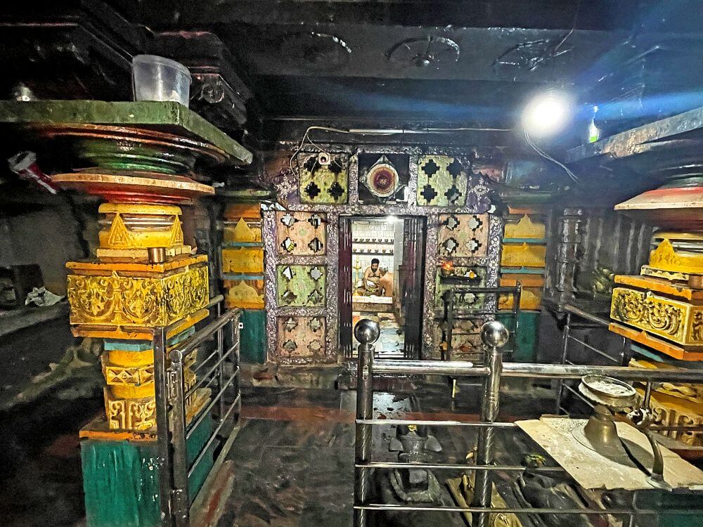 अंतराळात असलेले पाषाणी स्तंभ हे विविध भौमितिक आकाराचे आहेत. यावर वैशिष्ट्यपूर्ण नक्षीकाम आहे. या स्तंभांच्या मध्यभागी जमिनीवर तीन नंदी मूर्ती आहेत. येथून पुढे असलेल्या दगडी प्रवेशद्वारातून गर्भगृहात प्रवेश होतो. गर्भगृहात जमिनीवर मध्यभागी सिद्धनाथाची पिंडी आहे. गर्भगृहाच्या छतावर चारही बाजूंनी बाशिंगी कठडा आहे. या कठड्याच्या चार बाजूना नंदीच्या मूर्ती आहेत. गर्भगृहाचे शिखर हे कमळफुलात सामावल्याचे भासते, असे वैशिष्ट्यपूर्ण नक्षीकाम येथे आहे. या शिखरावर अनेक देवकोष्टके, त्यामध्ये शिल्पे व त्यावर लहान लहान कळस आहेत.