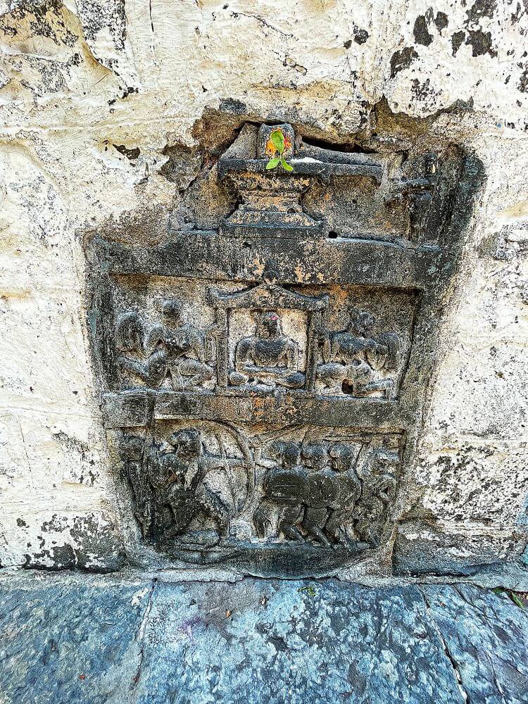 अंतराळाच्या दर्शनी भिंतीवर दोन्ही बाजुला नक्षीकाम आहे.