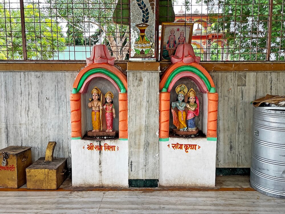 गणपती गर्भगृहाच्या द्वारपट्टीच्या वर गणपतीची मूर्ती, सोपीनाथ महाराज गर्भगृहाच्या द्वारपट्टीच्या वर शेषशाही विष्णू व लक्ष्मीमाता आणि गजानन महाराजांच्या गर्भगृहावर गजानन महाराजांची प्रतिमा आहे. मंदिराच्या छतावर चहुबाजूने कठडा व या तिन्ही गर्भगृहांवर तीन शिखरे आहेत. यापैकी सोपीनाथ महाराज यांच्या गर्भगृहावरील शिखर हे मुख्य व उंच आहे. या शिखरावर एकावर एक असे तीन आमलक व त्यावर कळस आहे. याशिवाय प्रांगणात हनुमान मंदिर, शारदा माता मंदिर, स्व. माधवजी महाराज समाधी मंदिर अशी लहान मंदिरे आणि मंदिर संस्थान कार्यालय आहे.