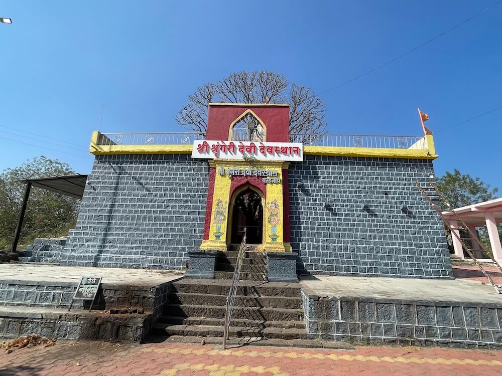 सभामंडप व गर्भगृह अशी रचना असलेल्या मंदिराच्या सभामंडपाचे प्रवेशद्वार सुमारे पंधरा फूट उंचीवर आहे. त्यास सुमारे वीस पायऱ्या आहेत. पायऱ्यांच्या दोन्ही बाजूला सुरक्षा भिंती आहेत आणि मधोमध स्टेनलेस स्टीलचा सुरक्षा कठडा आहे. येथील सभामंडप बंदिस्त स्वरूपाचा आहे. सभामंडपापेक्षा गर्भगृह उंचावर असल्यामुळे गर्भगृहाच्या प्रवेशद्वारास सात पायऱ्या आहेत. पायऱ्यांच्या दोन्ही बाजूला चौथरे आहेत आणि त्यावर चक्रनक्षी कोरलेली आहे. गर्भगृहाच्या द्वारशाखांवर स्तंभ नक्षी आहे, तसेच ललाटबिंबावर गणपतीचे शिल्प आहे. गर्भगृहात वज्रपीठावर संगमरवरी मखरात शृंगेरीदेवी व तुळजाभवानी देवीच्या काळ्या पाषाणातील मूर्ती आहेत. दोन्ही मूर्ती अष्टभुजा आहेत आणि देवीच्या हातात विविध आयुधे आहेत. विविध वस्त्रे व अलंकार ल्यालेल्या या मूर्तींच्या डोक्यावर मुकुट आहेत. दोन्ही मूर्तींच्या मागे एकच सामाईक प्रभावळ आहे व त्यामध्ये चंद्र, सूर्य व पर्णलता, पुष्पलतांची नक्षी आहे. मूर्तींच्या समोर चांदीच्या पादुका आहेत आणि तिथे पूजा साहित्याची ताटे ठेवलेली आहेत. गर्भगृहात अष्टकोनी वितानावर चक्राकार नक्षी आहे आणि छताला पितळी घंटा टांगलेल्या आहेत. गर्भगृहातून बाहेर पडण्यासाठी डाव्या बाजूला एक प्रवेशद्वार आहे. गर्भगृहाच्या छतावर चार थरांचे गोलाकार व वर निमुळते होत गेलेले शिखर आहे. शिखराच्या खालील तीन थरांत प्रत्येकी आठ देवकोष्ठके आहेत व त्यात विविध देवतांच्या मूर्ती आहेत. शिखराच्या चौथ्या थरात स्तंभ नक्षी आहे. शिखराचे सर्व थर कमळदल रिंगणाने विभागलेले आहेत. शीर्षभागी एकावर एक असे दोन आमलक आणि कळस आहे. गर्भगृहाच्या मागे डोंगरात आणखी एक दीपमाळ आहे. त्यापुढे मूळ मंदिराचे स्थान होते, असे सांगितले जाते.