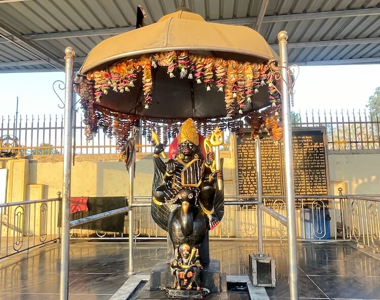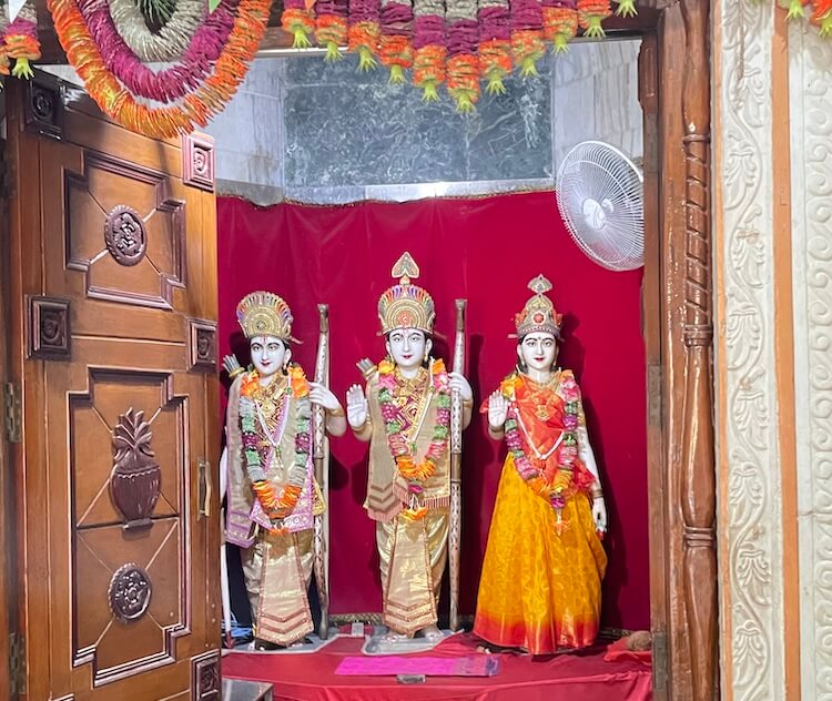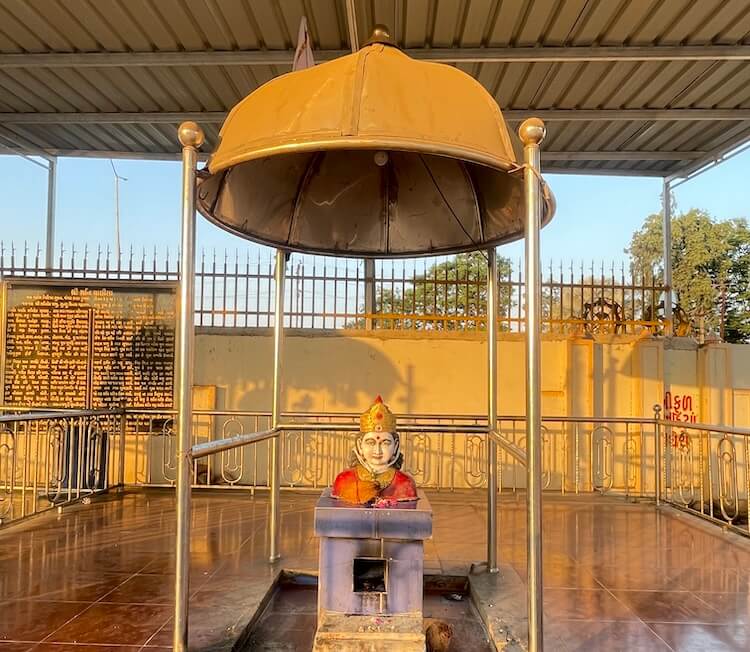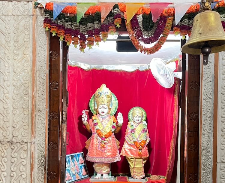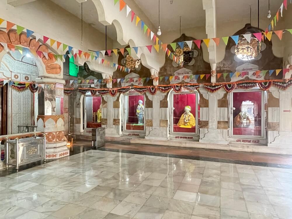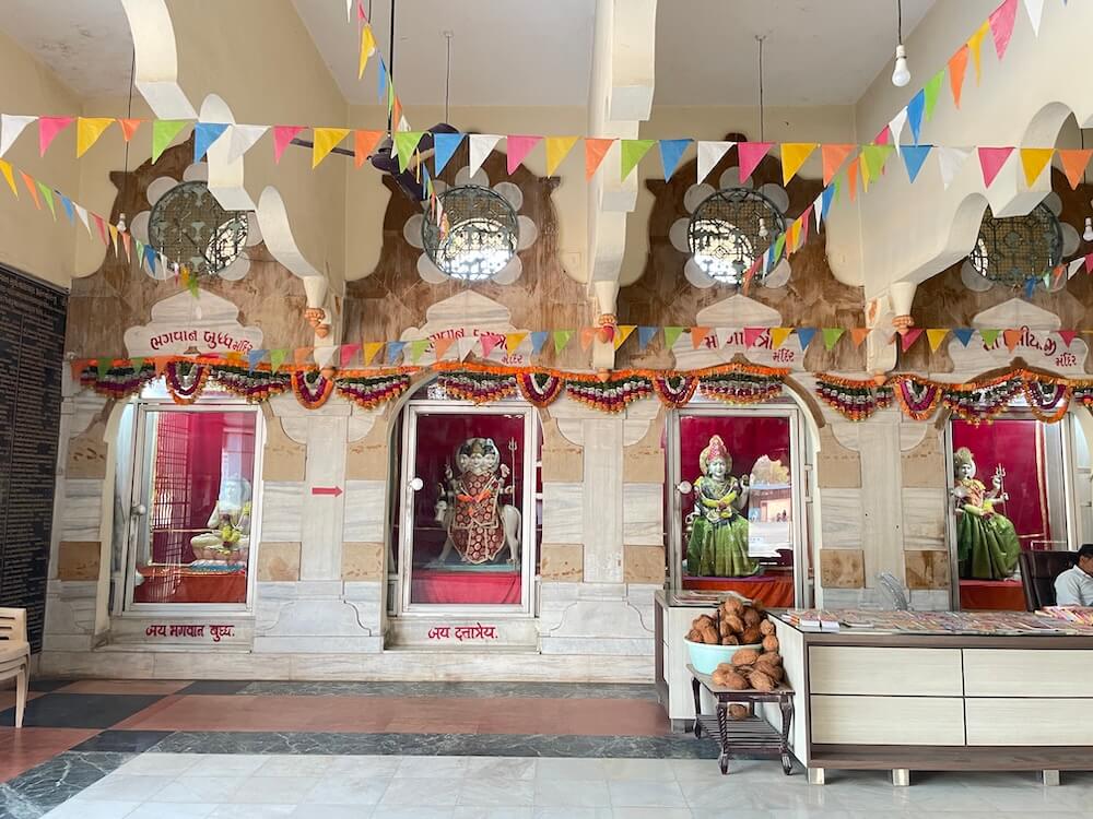 From the darshan mandap, a pradakshina path (circumambulatory passage) runs around the temple. From here, one enters the spacious sabhamandap (assembly hall). Along the left and right walls of this hall are structures resembling subsidiary sanctums in which numerous idols of deities and revered saints have been installed. Among them are images of Bhagavan Buddha, Sai Baba, Dattatreya, Ambamata, Saraswati, Mahakali Devi, Lalji Maharaj, Kupla Nandji Maharaj, Ramdev Pir Baba, Mahavir Swami, Mahatam Ramji, Karuna Sagar and Jalaram Bappa.