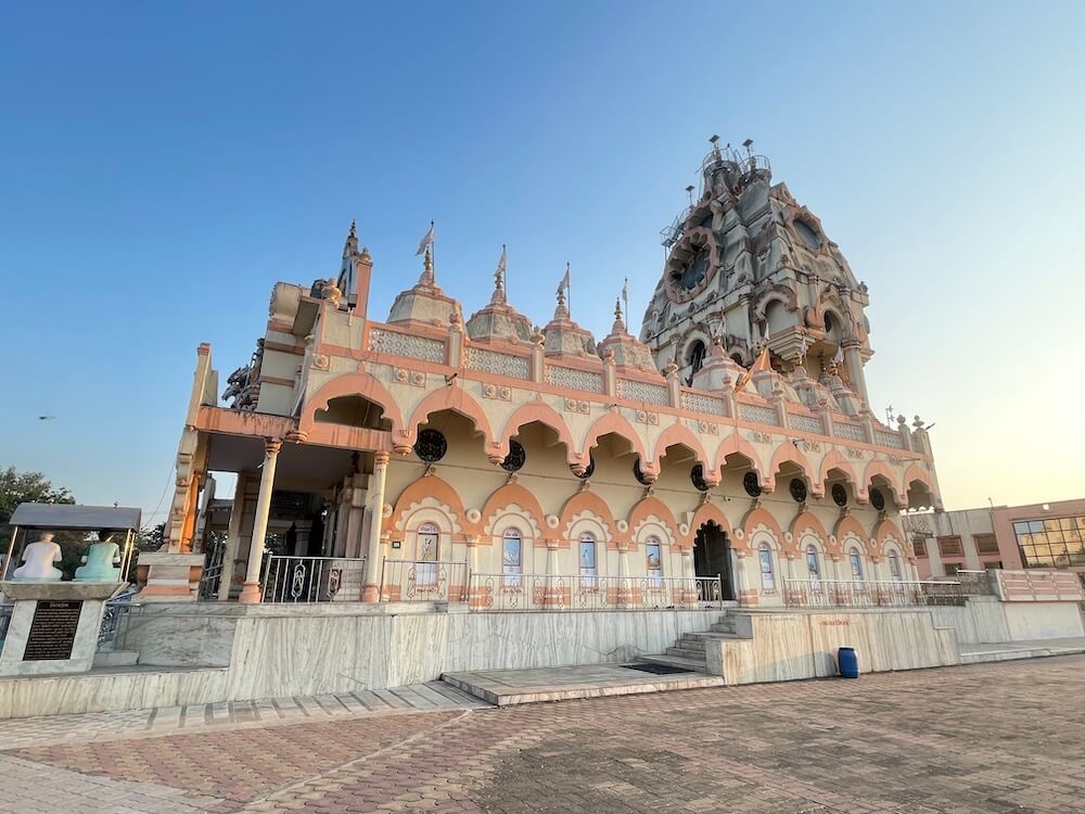 This temple is an excellent example of modern temple architecture. Its shikhara is extraordinarily tall, majestic and designed in multiple tiers. Slightly below the uppermost portion of the shikhara is a large circular Surya Chakra, which forms one of the distinctive features of the temple and symbolises Bhagavan Surya.