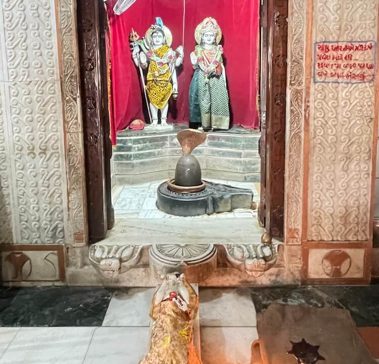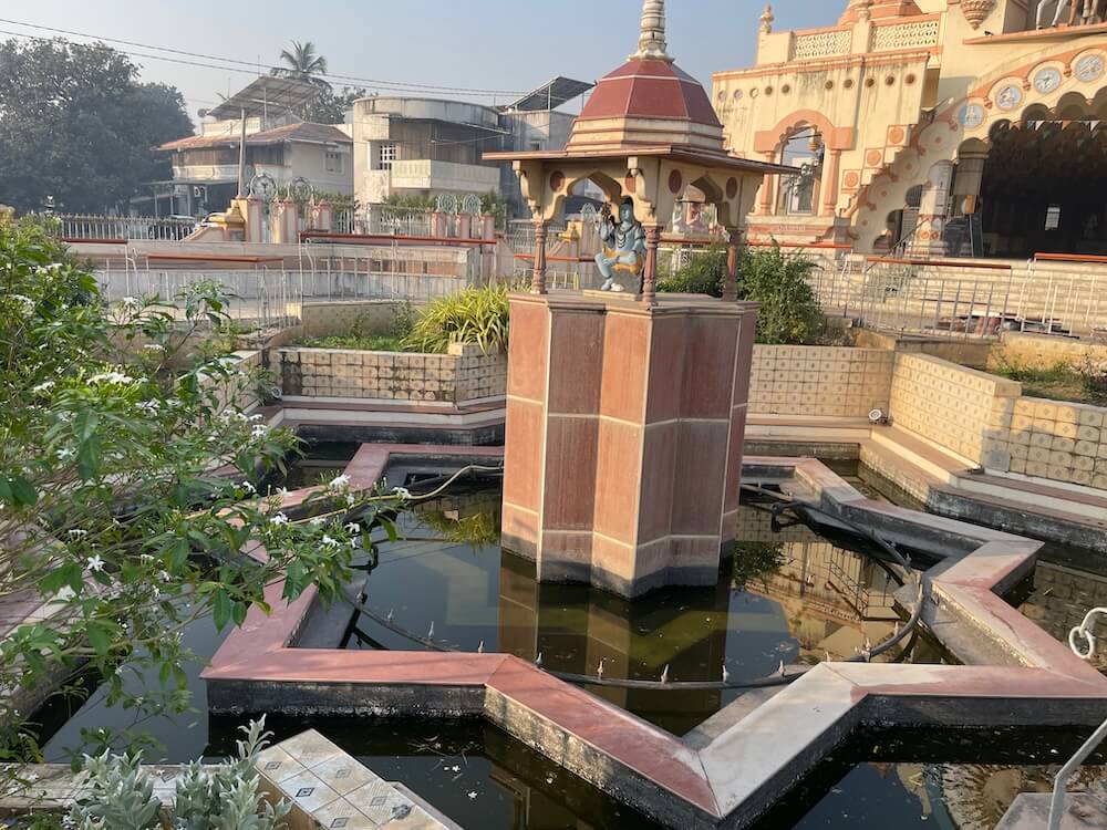 Located in the central part of Borsad town, the temple stands within a compound enclosed by boundary walls that contain two grand gateways. Passing through these gateways, one enters the spacious courtyard of the temple. The principal gateway facing the temple is supported by four carved pillars and contains three doorways. Ahead of this gateway in the courtyard and directly before the main temple stands a water vessel designed in the form of a Surya Yantra. Around this vessel, various ornamental and flowering plants have been planted. In the centre stands a tall shrine containing the idol of Lord Mahadev. Seating arrangements for devotees are provided around the water vessel. Further ahead, near the steps of the temple, is a large Havan kund used for sacred fire rituals. From the courtyard, nine steps lead upward to the elevated jagati (temple platform), where the darshan mandap is situated.