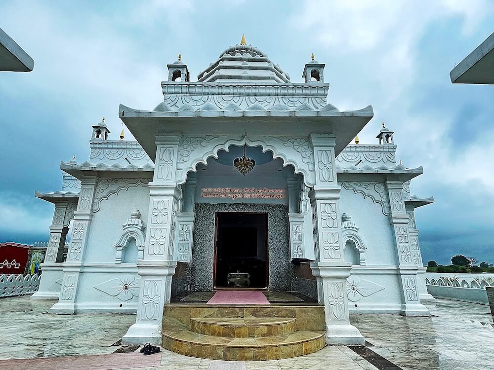 अंत्री मलकापूर गावात नदीकाठी स्थित असलेल्या या मंदिरापासून सुमारे १०० मिटर आधी सुंदरशी प्रवेश कमान आहे. या कमानीच्या वरच्या बाजूला बाशिंगी कठडा व देवकोष्टके व लहान लहान देवळ्या आहेत. या प्रवेशद्वारापासून मंदिरापर्यंत पेव्हरब्लॉकची फरसबंदी मार्गिका आहे. दोन्ही बाजूला असलेल्या वृक्षराजींमधून जाणाऱ्या या मार्गिकेमुळे हा परिसर स्वच्छ, शांत व सुंदर भासतो. तीन मुखमंडप, सभामंडप व गर्भगृह अशी या शुभ्र संगमरवरी मंदिराची संरचना आहे. आठ पायऱ्या चढून उंच अधिष्ठानावर असलेल्या मंदिराच्या प्रांगणात प्रवेश होतो. या पायरी मार्गाच्या दोन्ही बाजूला सोंड उंचावून भाविकांचे स्वागत करणारी वैशिष्ट्यपूर्ण गजराज शिल्पे आहेत. या पायरी मार्गाच्या शेजारी दोन लहान मंदिरे आहेत. प्रांगणातून उंचावर असलेल्या मंदिराच्या मुखमंडपात काही पायऱ्या चढून प्रवेश होतो. या मुखमंडपातील नक्षीदार चार स्तंभ एकमेकांशी महिरपी कमानींनी जोडलेले आहेत व दोन्हीकडे भाविकांसाठी कक्षासनांची रचना आहे. या मुखमंडपाच्या दोन्ही बाजूला सभामंडपाच्या दर्शनी भिंतीत देवकोष्टकांची रचना आहे.