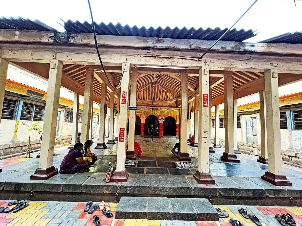 या मंदिराच्या दुमजली तटबंदीच्या तळमजल्यातून प्रांगणात जाण्यासाठी
