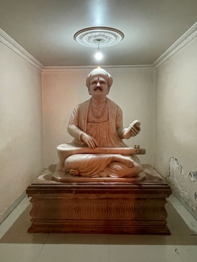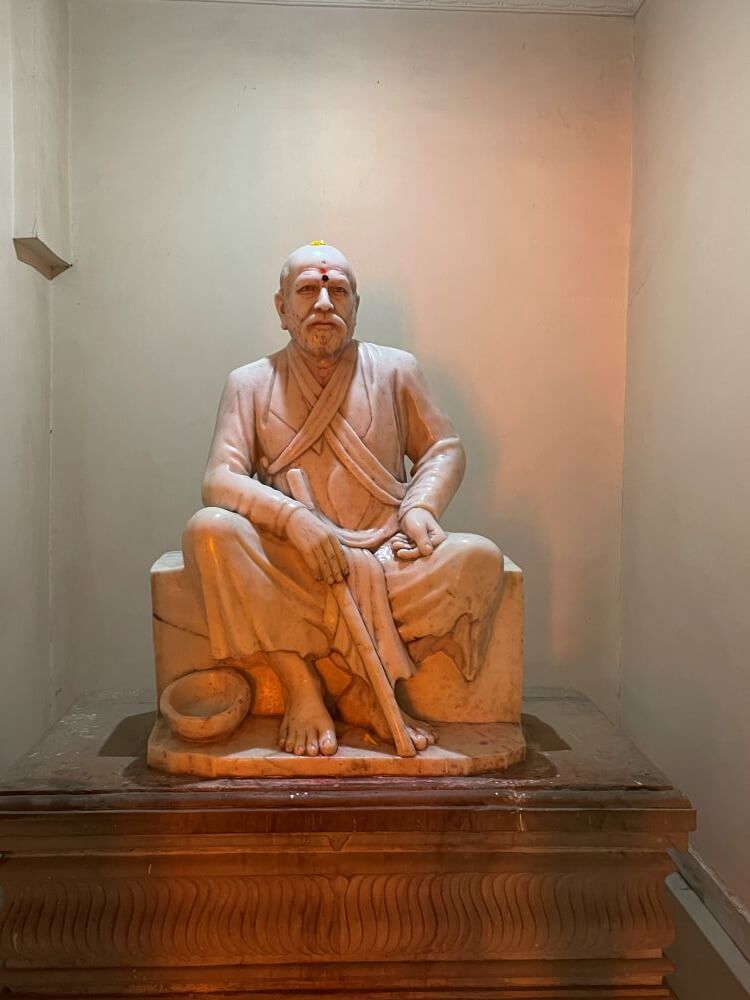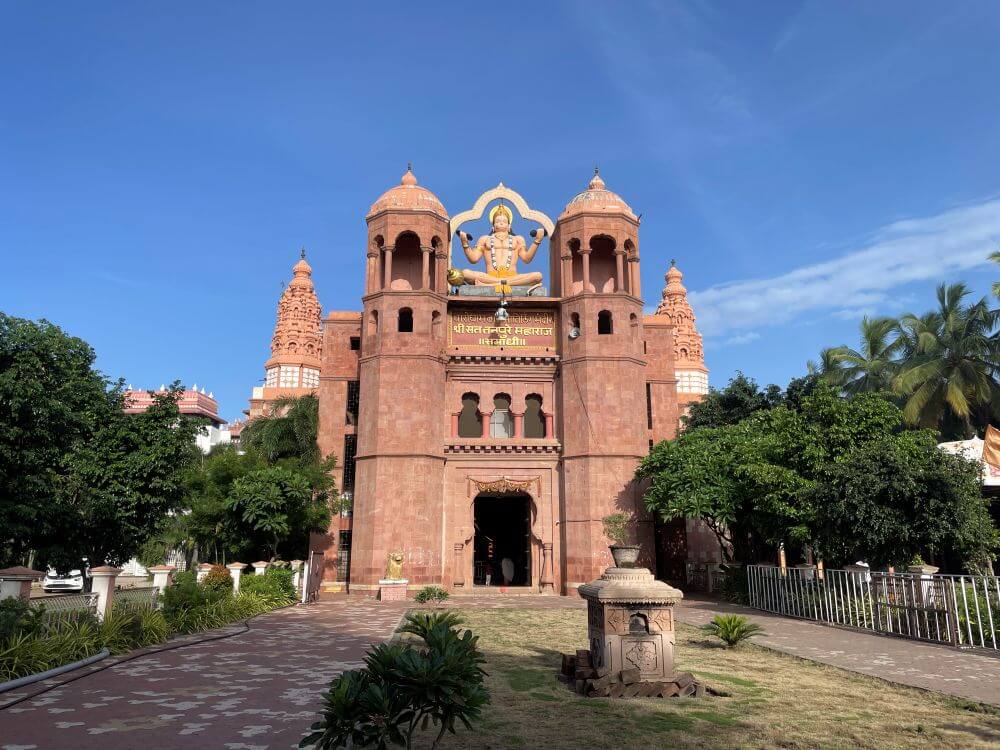 समाधी मंदिराच्या छतावर समोरील बाजूला दोन घुमटाकार शिखरे आहेत. त्यावर समाधी मंदिराच्या छतावर डाव्या व उजव्या बाजूला तीन थरांचे गोलाकार व वर निमुळते होत गेलेले शिखर आहे. शिखरावर विविध प्रकारची नक्षी व देवकोष्टके आहेत. या शिखरांच्या शीर्षभागी एकावर एक असे दोन आमलक व त्यावर कळस आहेत. समाधी मंदिराच्या छतावर मध्यभागी भजनात दंग असलेल्या मारूतीची विशाल मूर्ती आहे.