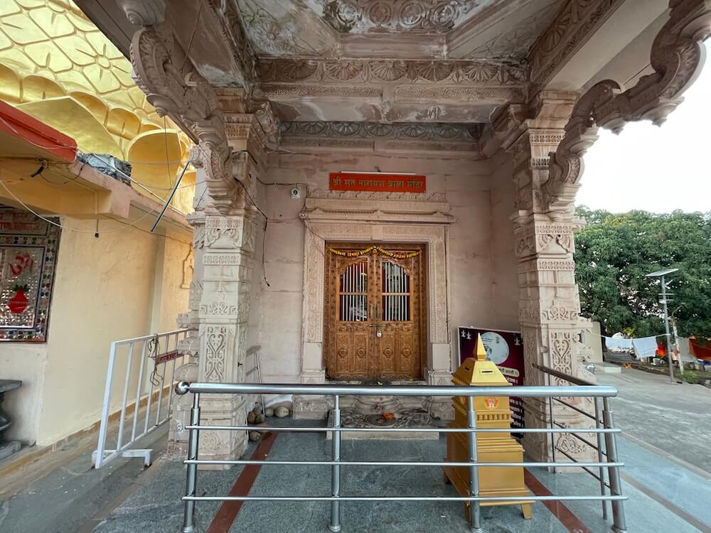 या मंदिराच्या बाजूला संत नारायण महाराजांचे समाधी मंदिर आहे. सभामंडप व गर्भगृह अशी मंदिराची रचना आहे. येथील गर्भगृहाच्या लाकडी प्रवेशद्वाराच्या द्वारशाखांवर व झडपांवर पानाफुलांची नक्षी कोरलेली आहे. गर्भगृहात जमिनीवर संत नारायण महाराजांच्या समाधीचा चौथरा आहे व त्याच्या मागे वज्रपीठावरील मखरात नारायण महाराजांची ध्यानस्थ मूर्ती आहे. मंदिराच्या सभामंडपाच्या छतावर पिरॅमिड आकारातील उतरत्या पायऱ्यांची रचना असलेले शिखर आहे. गर्भगृहाच्या छतावर उरुशृंगी प्रकारचे चौकोनी शिखर आहे. शिखरात चारही बाजूंना असलेल्या देवकोष्ठकांत विविध देवमूर्ती आहेत. शिखराच्या शीर्षभागी आमलक, त्यावर कळस व ध्वजपताका आहे.