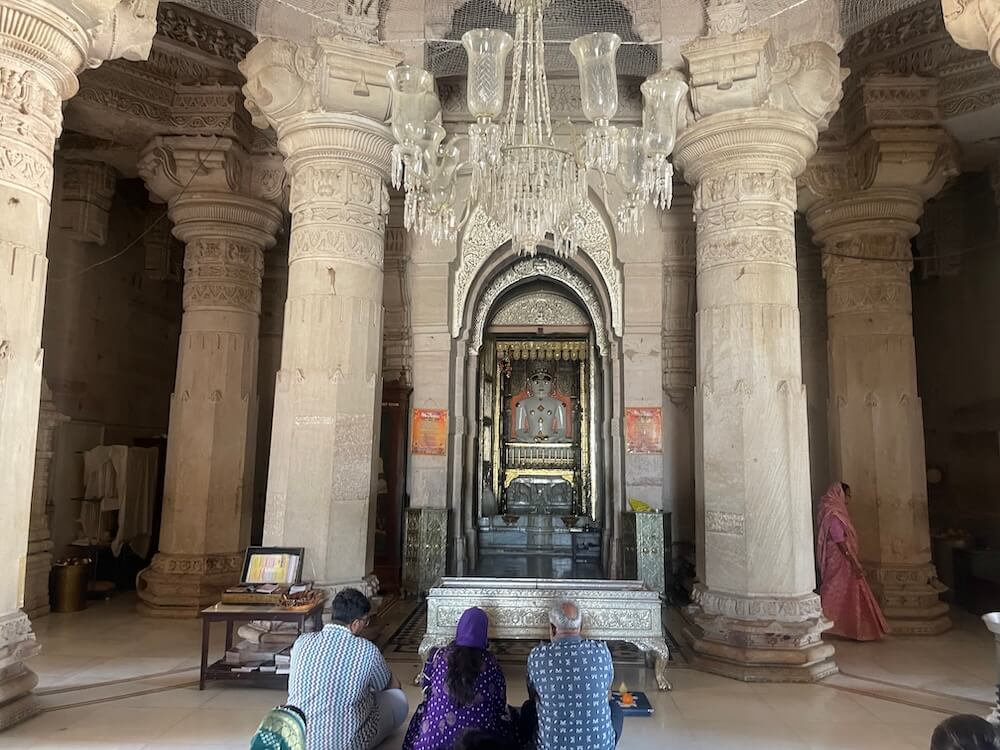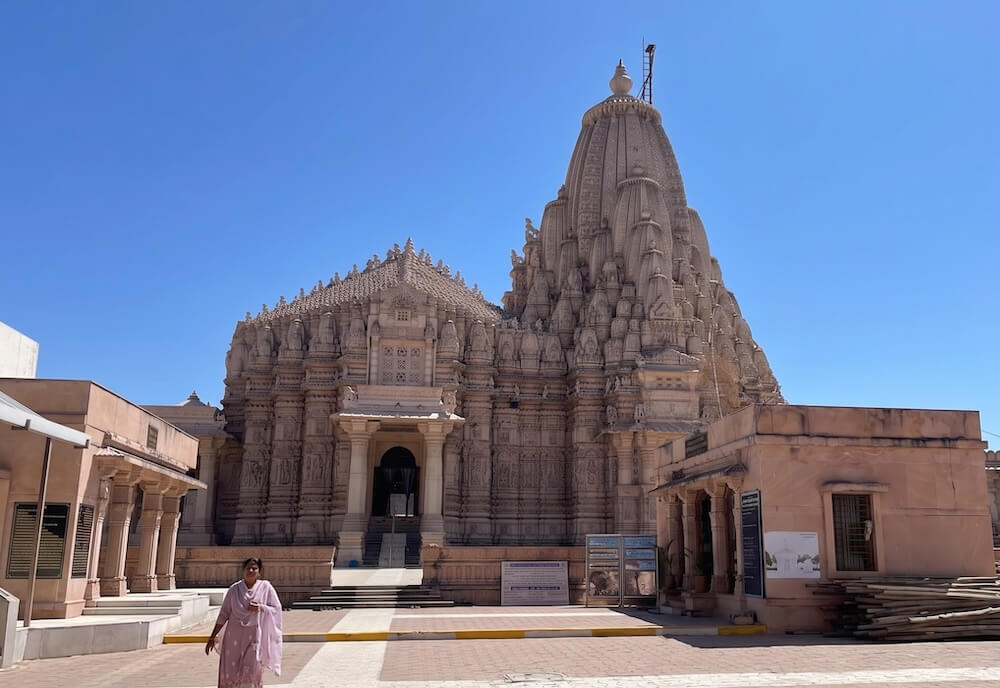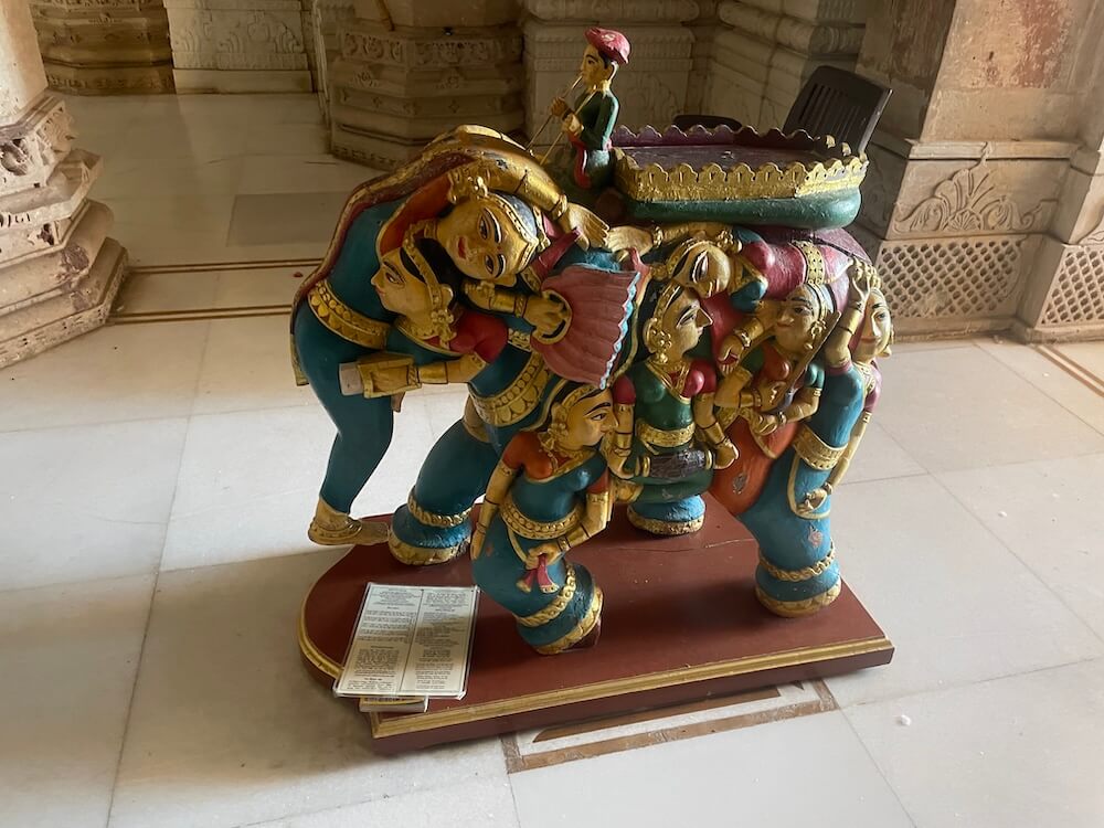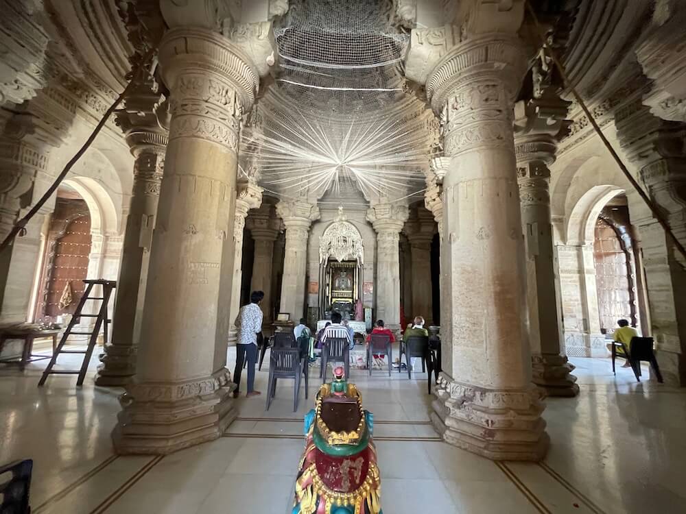 A distinctive feature of the temple’s construction is the use of ‘Kelag’ wood. It is believed that this timber is fire-resistant and possesses the miraculous property of exuding water should a fire break out. The ‘Mandovar’ (temple base) and the ‘Shikhara’ (spire) exhibit exceptionally fine carvings. The rear wall galleries are adorned with sculptures of Yakshas, Gandharvas and celestial dancers.