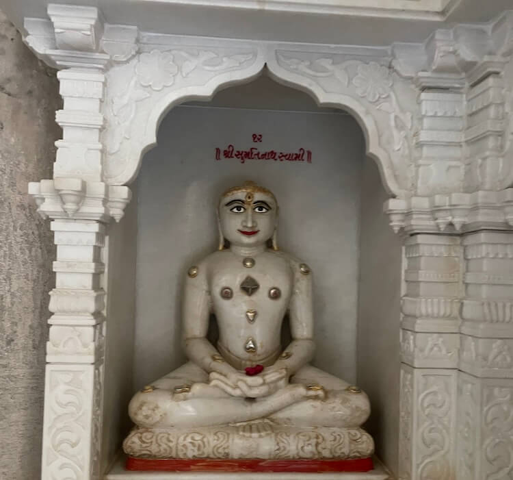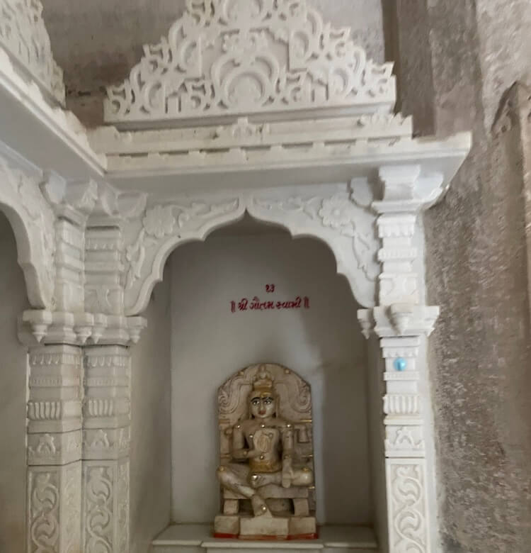 Standing before the Ajitnath temple is a ‘Kirtistambha’ (pillar of fame) bearing inscriptions from the era of Kumarapala.