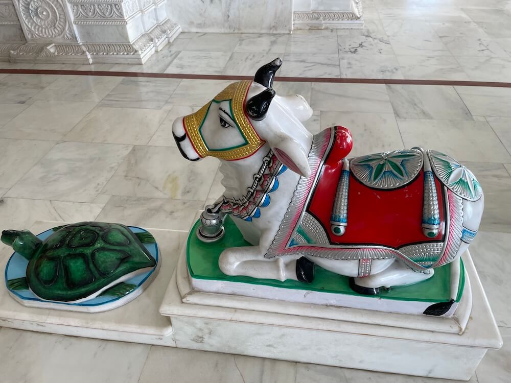 Marble elephant statues guard the spacious staircases on both sides of the temple and 35 steps lead up to the entrance of the main mandap. At the entryway are sculptures of lions on either side. Every column in the porch and side galleries is richly carved, as are the railings.