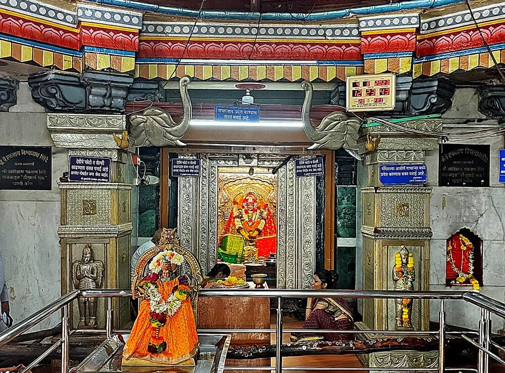 हेमाडपंती स्थापत्य शैलीच्या या मंदिराचे बांधकाम काळ्या पाषाणातील आहे. मंदिराच्या मुख्य प्रवेशद्वारावर नगारखाना आहे. या प्रवेशद्वारातून आत आल्यावर समोर दगडी दीपस्तंभ आहेत. येथून मंदिराच्या सभामंडपात प्रवेश होतो. कोल्हापूरच्या अंबाबाई मंदिराच्या रचनेशी साम्य असलेले हे मंदिर दगडी स्तंभांवर आधारलेले आहे व प्रत्येक स्तंभावर हत्ती, मोर, वेली आणि पौराणिक कथांची शिल्पे कोरलेली आहेत. सभामंडपाच्या मध्यभागी देवीचे वाहन असलेल्या सिंहाची मोठी दगडी मूर्ती आहे.