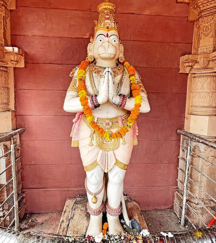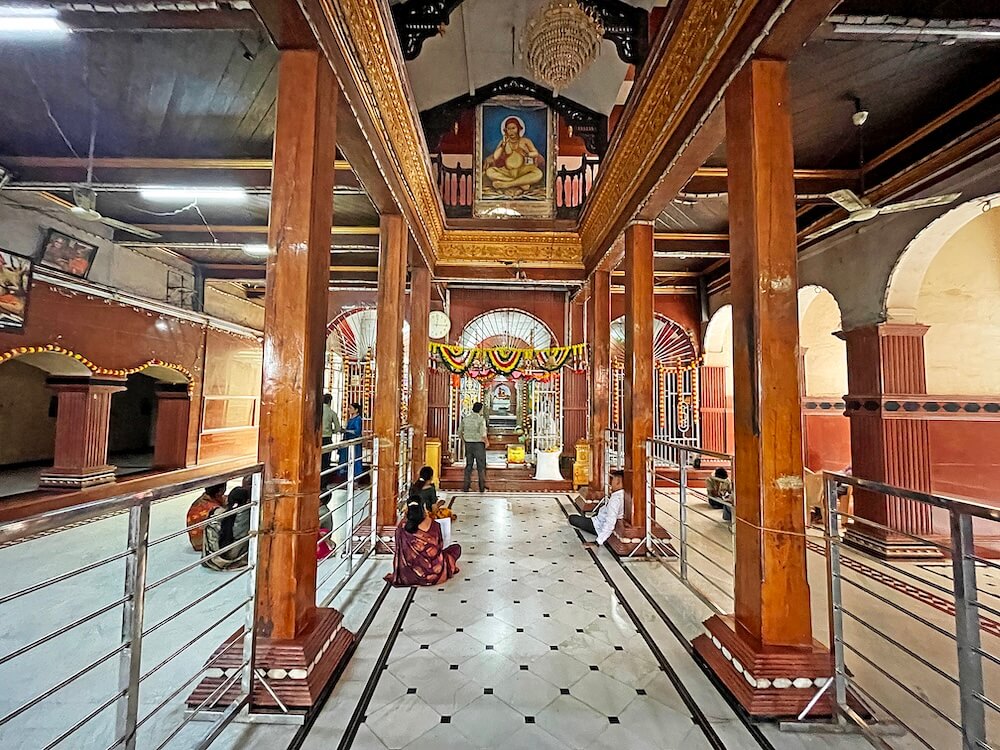 मुखमंडपात उजव्या व डाव्या बाजूला वज्रपीठावर गरुड व हनुमंत यांच्या मूर्ती विराजमान आहेत. तटबंदीतून आत जाताच अर्धमंडप, दुमजली सभामंडप, अंतराळ व गर्भगृह अशी रचना असलेले सुंदर समाधी मंदिर दिसते. अर्धमंडपात बारा नक्षीदार स्तंभ आहेत. या स्तंभांच्या शीर्षभागी कणी व कणीवरील तुळईवर छत आहे. अर्धमंडपात भाविकांना बसण्यासाठी आसनांची सोय करण्यात आली आहे. पुढे अर्धखुल्या स्वरूपाचा सभामंडप लागतो.