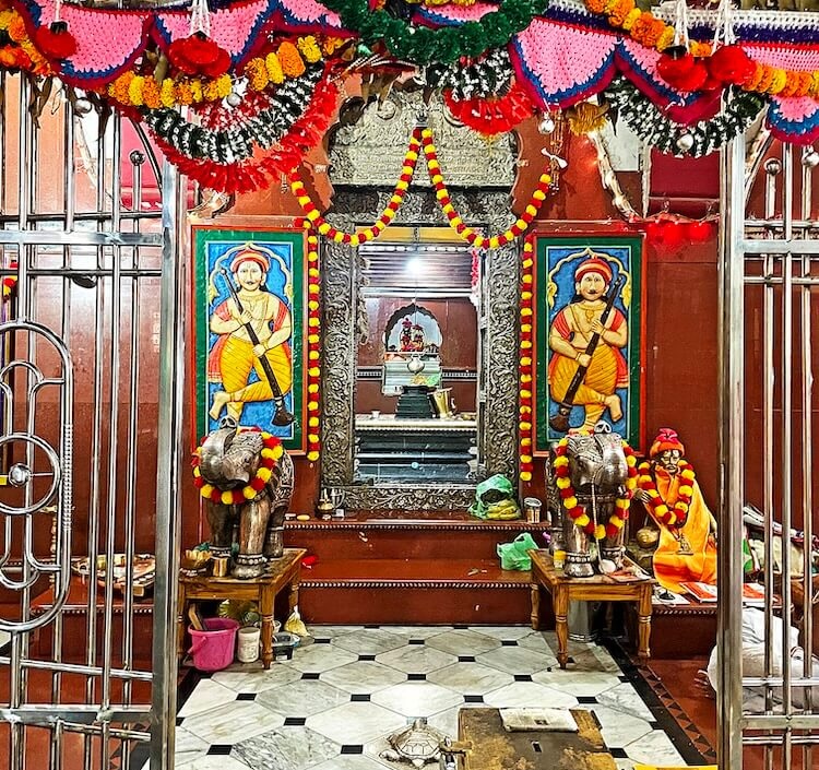 पुढे अंतराळात जमिनीवर कासव शिल्प आहे. गर्भगृहाच्या प्रवेशद्वाराच्या दोन्ही बाजूला लाकडी मेजावर चांदीची गजराज शिल्पे आहेत. अंतराळात तुकाराम महाराजांची पितळी उत्सवमूर्ती व तसबिरी ठेवण्यात आल्या आहेत.