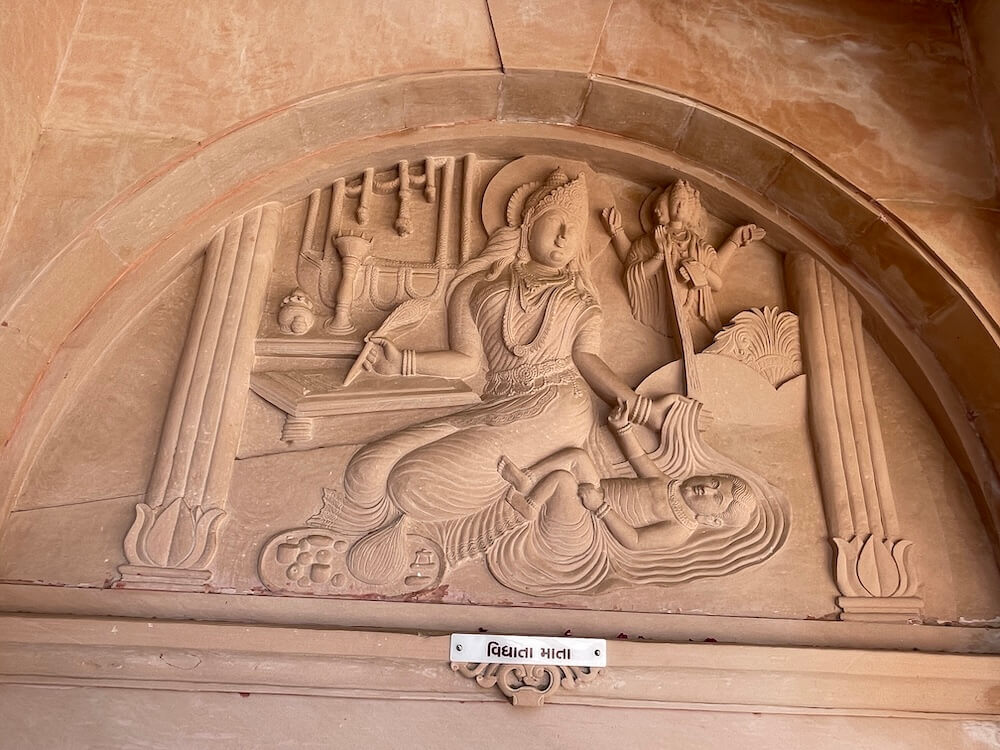 Later, between 1065 and 1067 AD, Vegda Gami oversaw new construction work. Around 1299 CE, Ulugh Khan, along with another general, Nusrat Khan, invaded Gujarat during the reign of Alauddin Khilji. At that time, Gujarat was ruled by Karna II. The invading forces defeated Karna II, captured major cities such as Anhilwara (Patan), plundered immense wealth, including from temples such as Somnath and carried prisoners and loot back to Delhi. During this invasion, this temple was also destroyed. However, the Goddess’s idol was carefully preserved within a large monastery in Mollot.