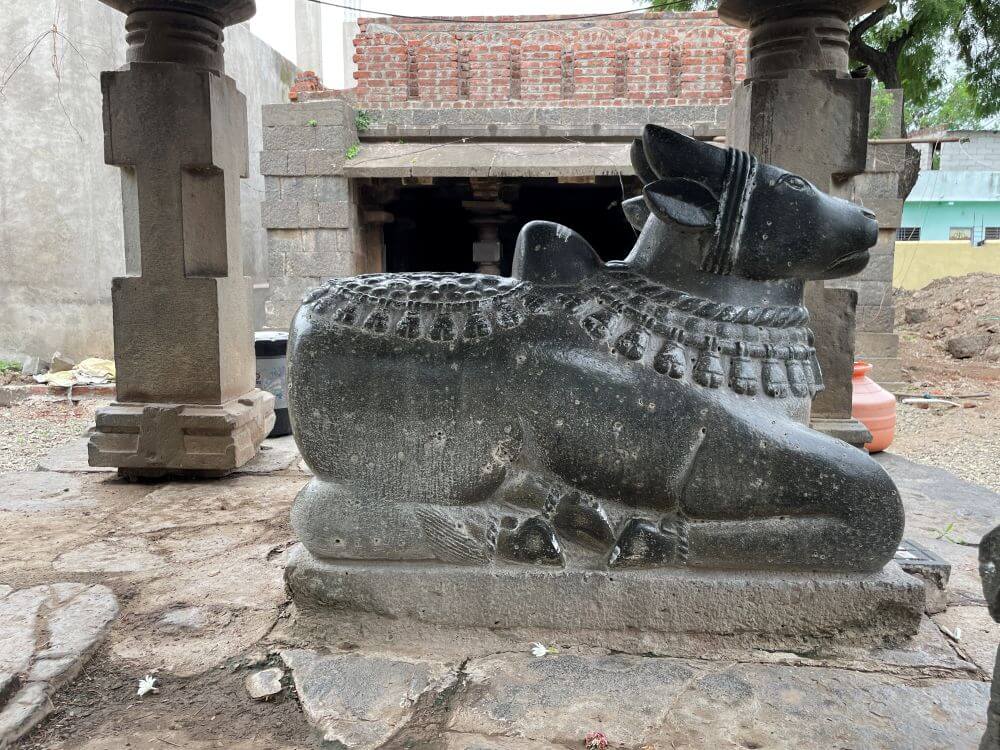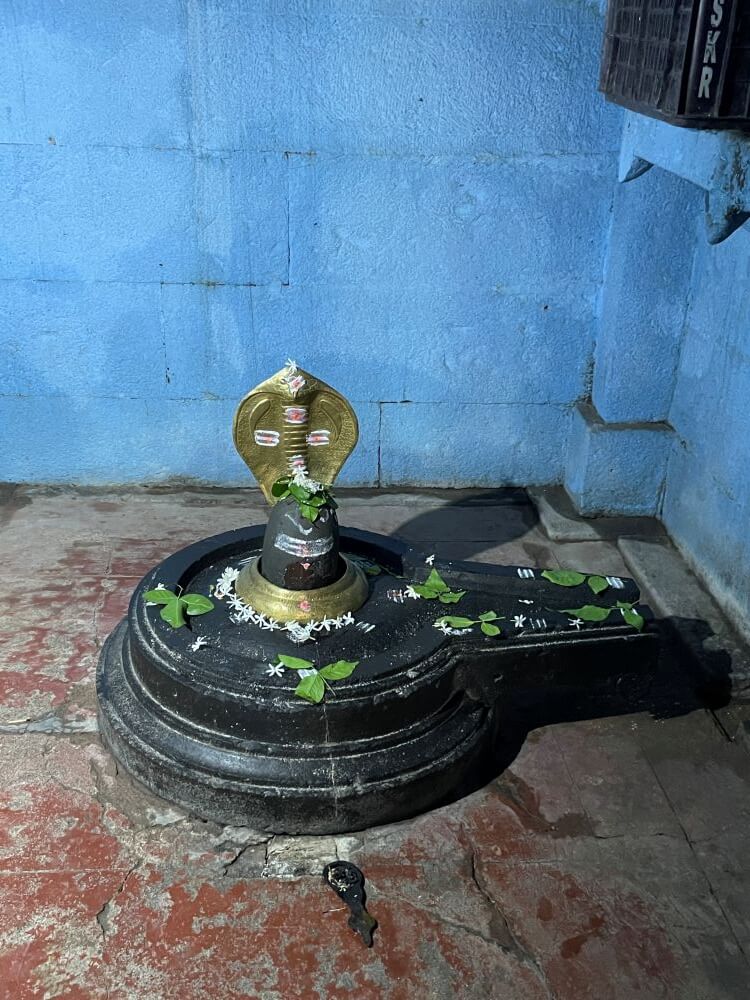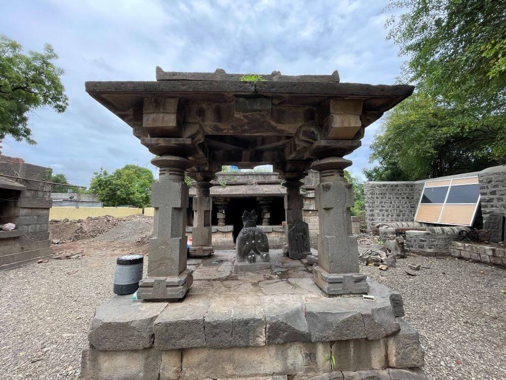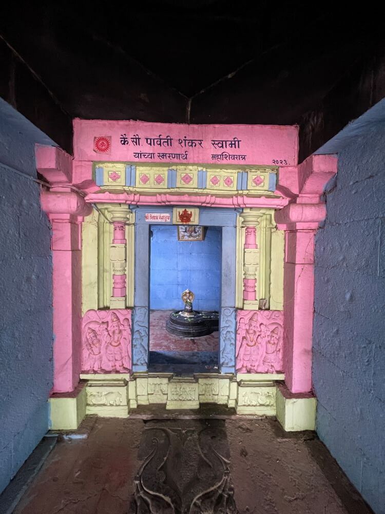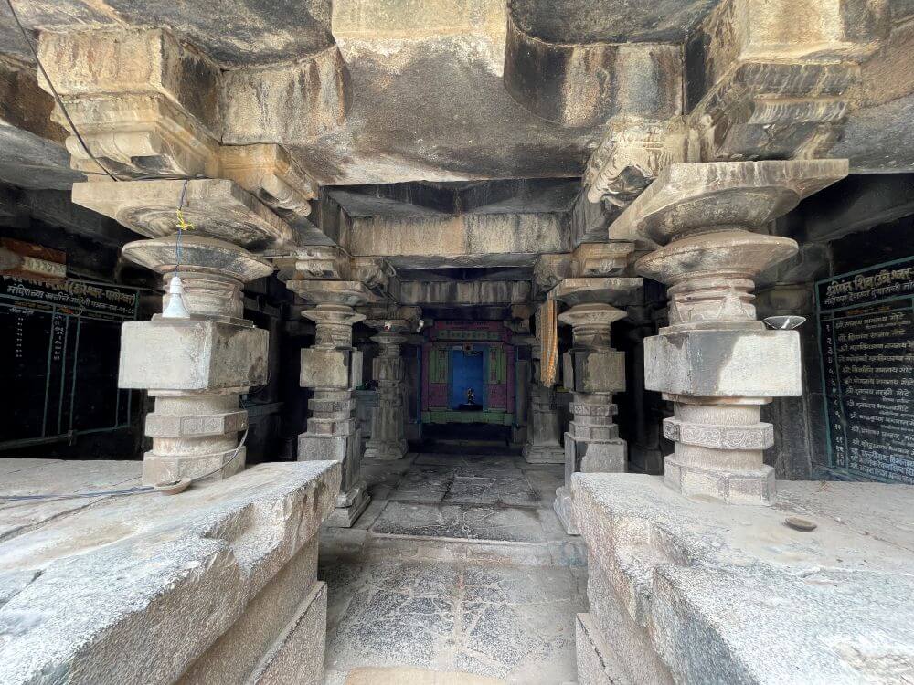 अंतराळात गर्भगृहाच्या प्रवेशद्वारासमोर जमिनीवर पाषाणात कोरलेली स्वागतनक्षी आहे. गर्भगृहाच्या प्रवेशद्वारात दोन्ही बाजूला खाली शैव व वैष्णव द्वारपाल, द्वारापलिका आणि चामरधारिणी शिल्पे आहेत. द्वारशाखांवर पर्णशाखा, पुष्पशाखा व स्तंभशाखा आहेत. ललाटबिंबावर गणपतीची मूर्ती व तोरणात पुष्प नक्षी आहेत. मंडारकास असलेल्या चंद्रशिळेच्या दोन्ही बाजूस कीर्तीमुख व गजथर आहे. गर्भगृहात मध्यभागी जमिनीवर शिवपिंडी आहे. शिवपिंडीवर छत्र धरलेला पितळी नाग आहे. गर्भगृहाचे छत भिंतींवर तोललेले आहे व वितानावर चक्राकार नक्षी आणि त्यामध्ये पाषाणी झुंबर आहे.