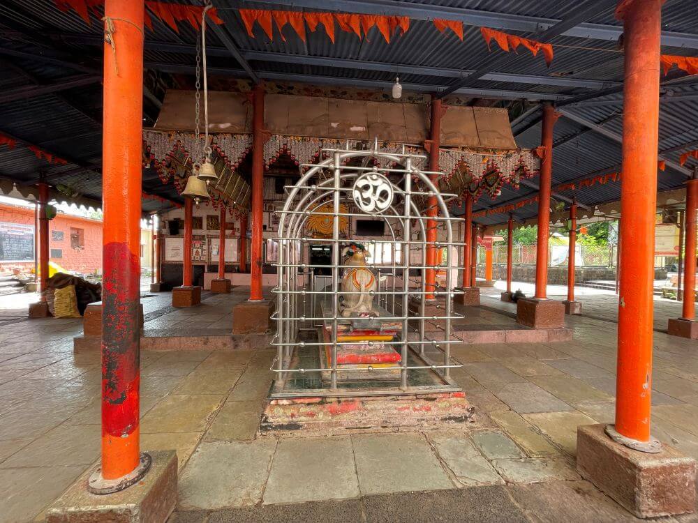 हेमाडपंती रचना असलेल्या या मंदिराचा सभामंडप बंदिस्त स्वरूपाचा आहे. येथे दोन कासवमूर्ती आहेत. त्यापैकी एक संगमरवरी तर दुसरी धातूची आहे. येथील देवकोष्टकांत लक्ष्मीविष्णू आणि गणपतीच्या मूर्ती आहेत. अंतराळात गर्भगृहाच्या प्रवेशद्वाराजवळ हत्तींची उठावशिल्पे द्वारपाल आहेत. गर्भगृहाचा उंबरठा आणि ही सारी शिल्पे चांदीच्या पत्र्याने मढविलेली आहेत. गर्भगृहात अखंड काळ्या पाषाणातील शिवपिंडी आहे. या पिंडीच्या मागे त्यावर उत्सवप्रसंगी चढविण्यात येणारा मुखवटा आहे