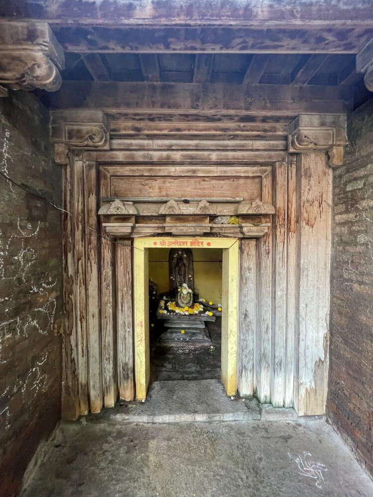 अंतराळापुढे गर्भगृहाचे लाकडी प्रवेशद्वार आहे. येथील द्वारशाखांवर जुजबी नक्षीकाम आहे. ८ फूट बाय ८ फूट चौरस गर्भगृहात जमिनीवर मध्यभागी शिवपिंडी आहे.