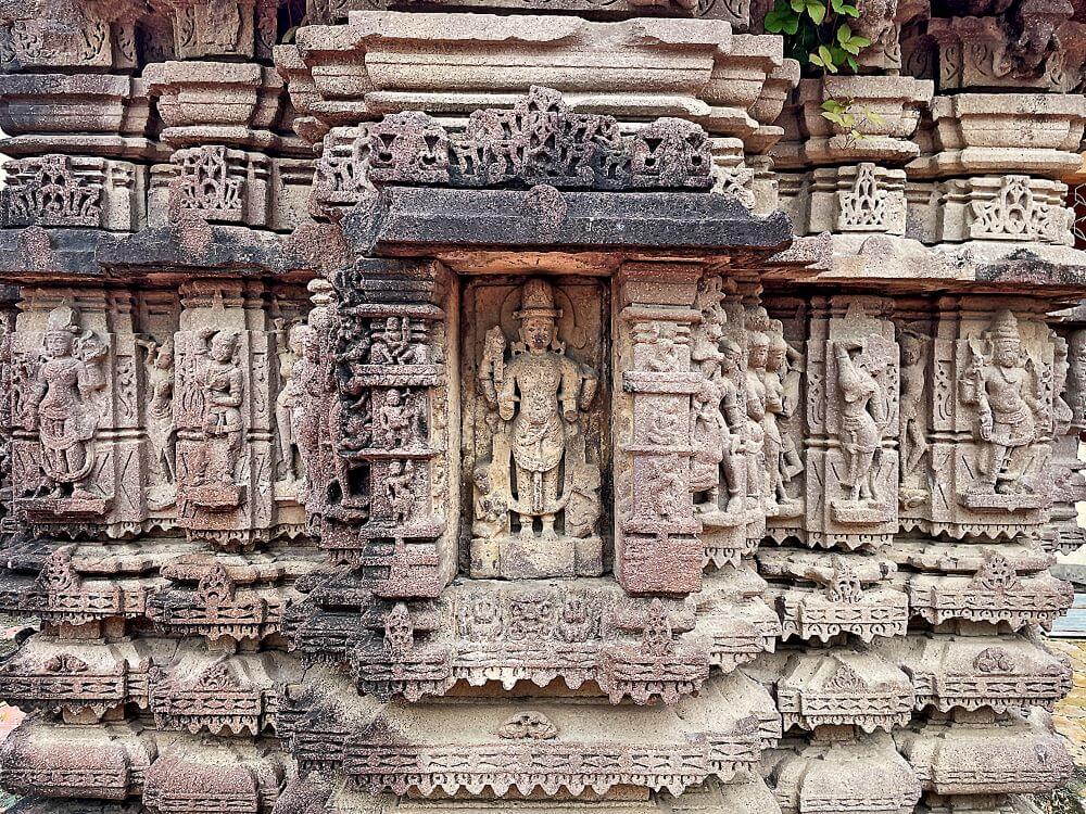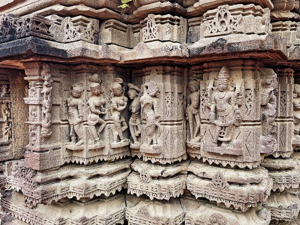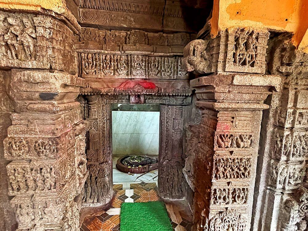 मुख्य गर्भगृहापेक्षा दक्षिणेकडील गर्भगृहात अधिक शिल्पे आहेत. या गर्भगृहाच्या प्रवेशद्वारावर त्रिशाखा आहेत. येथील ललाटबिंबावर गणेशमूर्ती आहे. वरील बाजूस मध्यभागी विष्णू आणि टोकावर शिव आणि ब्रह्मा आहेत. याशिवाय नवग्रहांच्या उभ्या आकृत्या आहेत. उत्तरेकडील गर्भगृहाच्या प्रवेशद्वारावरही त्रिशाखा आहेत. ललाटबिंबावर गणेशमूर्ती असून वरच्या द्वारमाथ्यावर मातृका आहेत.