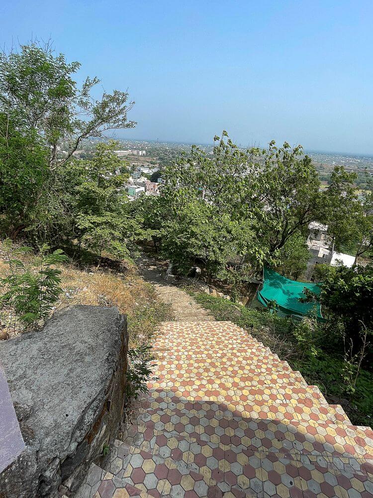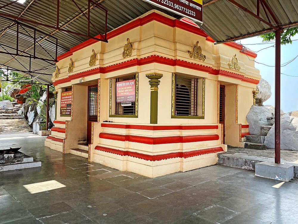 डोंगराच्या पायथ्याशी असलेल्या कमानीपासून काही अंतरावर कुंदकेश्वर महादेव मंदिर आहे. या मंदिराच्या सभामंडपात वज्रपिठावर नंदी व गर्भगृहात शिवपिंडी आहे. शिवपिंडीवर छत्र धरलेल्या पाच फण्यांच्या नागाची पितळी प्रतिकृती, छताला टांगलेले अभिषेक पात्र व बाजूला त्रिशूल डमरू आहेत. शिवपिंडीच्या मागे भिंतीतील देवकोष्टकात गणपतीची संगमरवरी मूर्ती आहे. शिवमंदिराच्या बाजूला हिंगलाज देवीचे मंदिर आहे. मंदिरात वज्रपिठावर हिंगलाज देवीची सिंहासनारूढ अष्टभुजा संगमरवरी मूर्ती आहे. देवीच्या हातात त्रिशूल, खड्ग, धनुष्य, अग्निकुंड, पद्मफुल, पाश, शंख व एक हात अभयमुद्रेत आहे. देवीच्या डोक्यावर मुकुट, अंगावर उंची वस्त्रे व अलंकार आहेत. देवीच्या बाजूला गणपतीची मूर्ती आहे.
