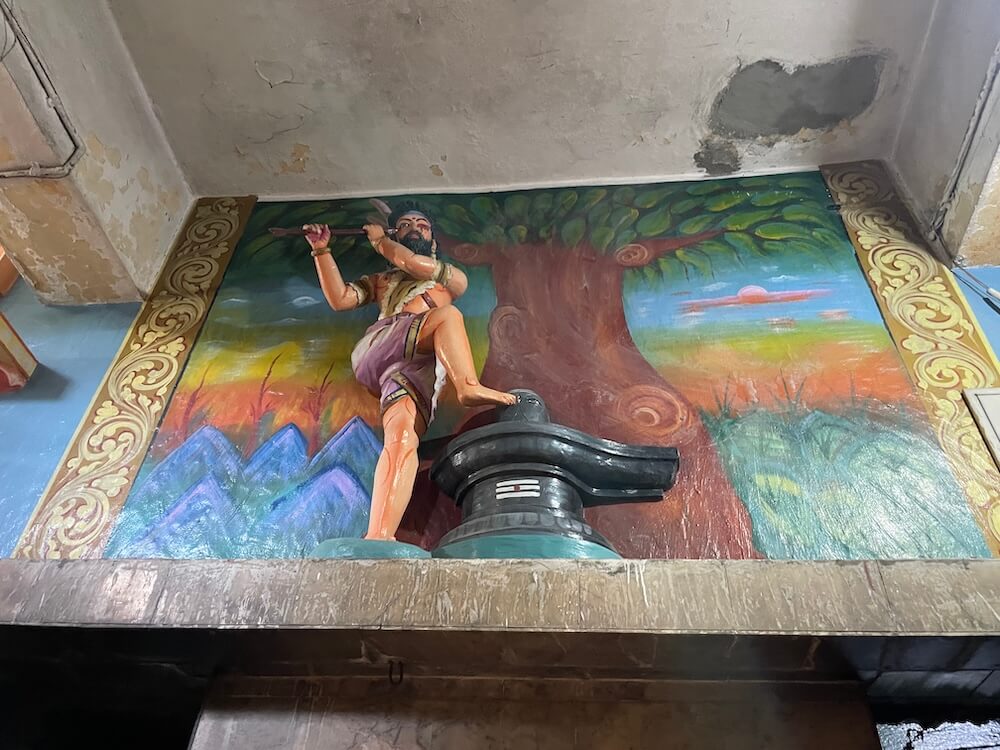 प्रवेशद्वारातून बंदिस्त सभामंडपात प्रवेश होतो. या सभामंडपाच्या डावीकडे व उजवीकडे आणखी दोन दरवाजे आहेत. गर्भगृहासमोर कोरीव काम असलेली, काळ्या पाषाणात घडवलेली नंदीमूर्ती आहे. या नंदीच्या पाठीवर असलेले वाशिंड वैशिष्ट्यपूर्ण आहे. गर्भगृहाच्या दर्शनी भिंतीवर कैलास पर्वतावर विराजमान शिव-पार्वती यांची उठावशिल्पे आहेत; त्यांच्यासोबत गजानन आणि कार्तिकेयही आहेत. या सर्वांची वाहने म्हणजेच नंदी, सिंह, मूषक आणि मोर हे देखील तेथे अंकित केलेले आहेत. या आकर्षक शिल्पाखालीच गर्भगृहात प्रवेश करण्यासाठीचे प्रवेशद्वार आहे आणि त्याच्या ललाटबिंबस्थानी गणपतीची प्रतिमा आहे. दरवाजाच्या शेजारी द्वारपाल आहेत. गर्भगृहात जाण्यासाठी तीन ते चार पायऱ्या उतराव्या लागतात. गर्भगृहात जमिनीशी समतल अशी शिवपिंडी आहे. गर्भगृहाच्या समोरच्या भिंतीवर मुख्य देवकोष्टकात देवी पार्वतीची भवानी स्वरूपातील मूर्ती आहे. शेजारी छोट्या उपकोष्टकात देवतांच्या धातूच्या प्रतिमा आहेत. गर्भगृहाला प्रशस्त प्रदक्षिणा मार्ग आहे. गर्भगृहाच्या भिंतीवर बाहेरच्या बाजूने अनेक पौराणिक प्रसंग उठावशिल्पांच्या माध्यमातून साकारण्यात आले आहेत. गर्भगृहाच्या चारही बाजूंना शोभिवंत खांब आहेत. त्यावर असलेल्या शिखराची रचना दाक्षिणात्य पद्धतीची आहे. मुख्य चार टप्प्यांत विभागलेल्या या शिखराच्या वर आमलक आणि कळस आहे.