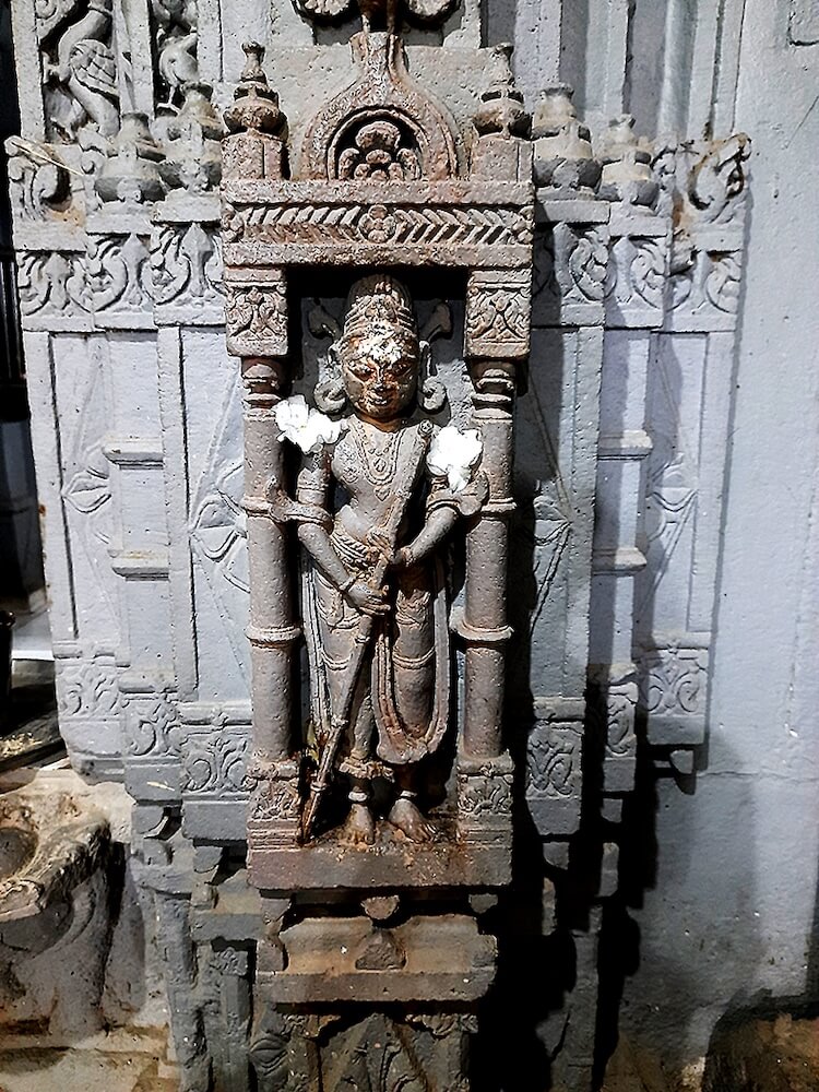 गर्भगृहाचे प्रवेशद्वार अत्यंत वैशिष्ट्यपूर्ण आहे. या द्वारावर अनेक शिल्पे कोरलेली आहेत. त्यात श्रीकृष्णाच्या चरित्रातील काही देखाव्यांचा समावेश आहे. मुरली वाजविणारा कृष्ण, त्याचे सवंगडी, समोर गोमाता असलेले शिल्प वैशिष्ट्यपूर्ण आहे. वैष्णवांचे दैवत असलेल्या भगवान श्रीकृष्णाला शिवमंदिरात मिळालेले मानाचे स्थान हे या मंदिराचे खास वैशिष्ट्य सांगितले जाते. गर्भगृहाच्या द्वारशाखांवर द्वारपाल शिल्पे व नक्षीकाम आहे. ललाटबिंबावर गणपतीची मूर्ती आहे. येथील गर्भगृह हे काहीसे खोलवर आहे. त्यामुळे प्रवेशद्वारातून काही पायऱ्या उतरून गर्भगृहात प्रवेश होतो. गर्भगृहात जमिनीवर मध्यभागी वंखनाथ महादेवाची पिंडी आहे. या पिंडीवर धातूच्या पत्र्याचे आवरण व नागाची प्रतिमा आहे. समोरच्या भिंतीतील देवकोष्टकात काळ्या पाषाणातील पार्वतीची मूर्ती आहे.