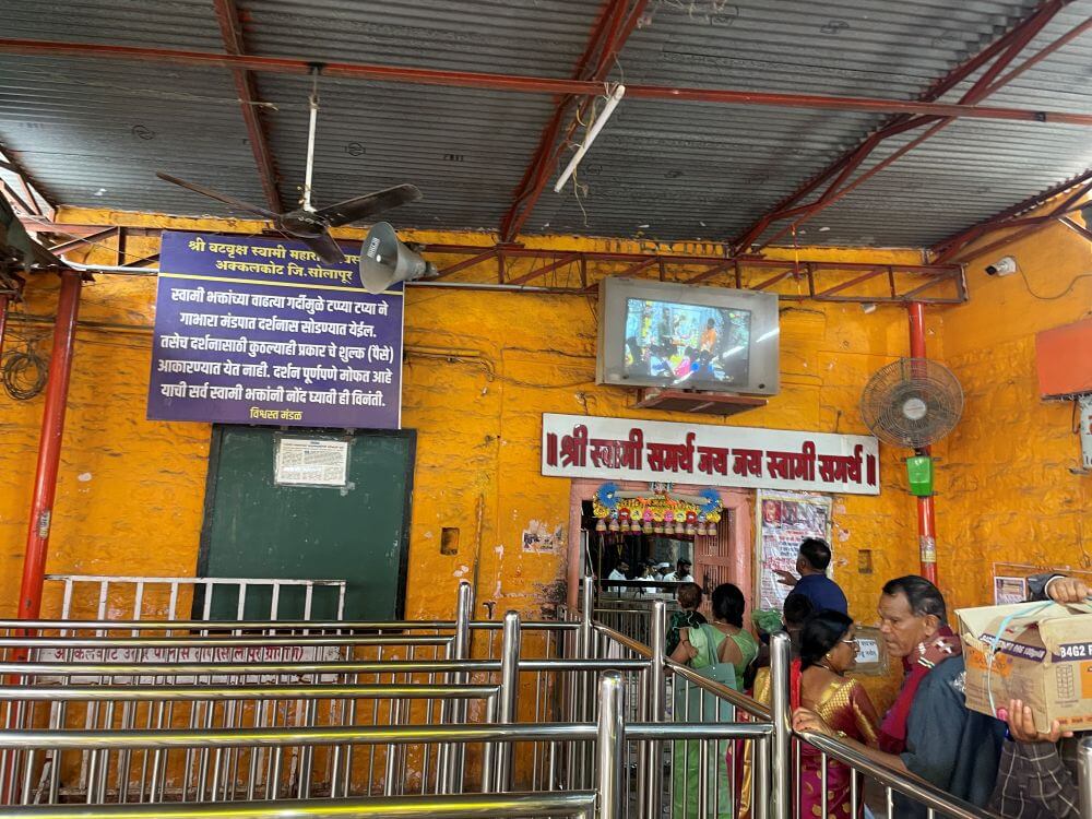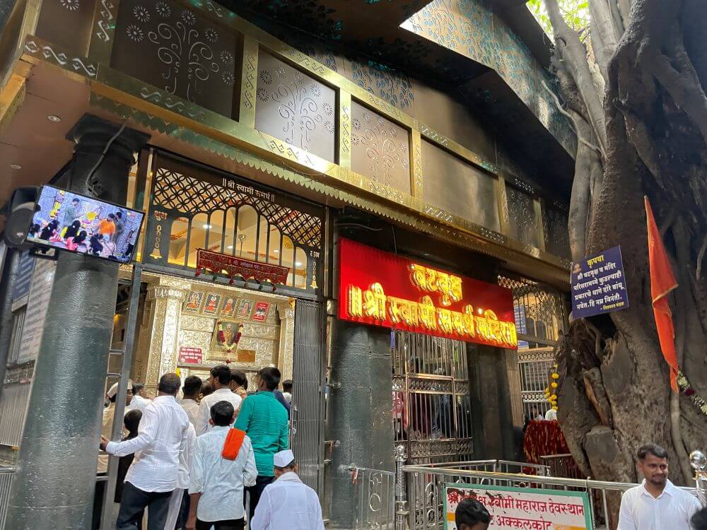 सभामंडपात भाविकांच्या सुविधेसाठी दर्शनरांगेची व्यवस्था आहे. येथून गर्भगृहातील स्वामी समर्थांच्या समाधीचे दर्शन घेता येते. दगडी बांधणीच्या गर्भगृहाचे प्रवेशद्वार व त्याबाजूला असलेले दोन स्तंभ हे चांदीच्या पत्र्याने मढविलेले आहेत. या स्तंभांवर द्वारपाल व पानाफुलांच्या नक्षी कोरलेल्या आहेत. प्रवेशद्वाराच्या द्वारशाखांवरही कलाकुसर आहे. ललाटबिंबस्थानी गणपतीची मूर्ती व त्यावरील भागात स्वामी समर्थांची मोठी प्रतिमा आहे. या प्रतिमेच्या वर श्रीदत्त, श्रीपाद श्रीवल्लभ, नृसिंह सरस्वती, स्वामी समर्थ व स्वामी समर्थांच्या निर्गुण पादुका अशा चार प्रतिमा लावलेल्या आहेत. गर्भगृहात चांदीच्या वज्रपिठावर स्वामी समर्थांची समाधी व त्यावर महाराजांची शुभ्र संगमरवरी मूर्ती आहे.