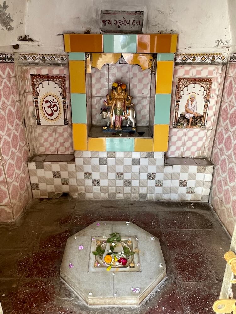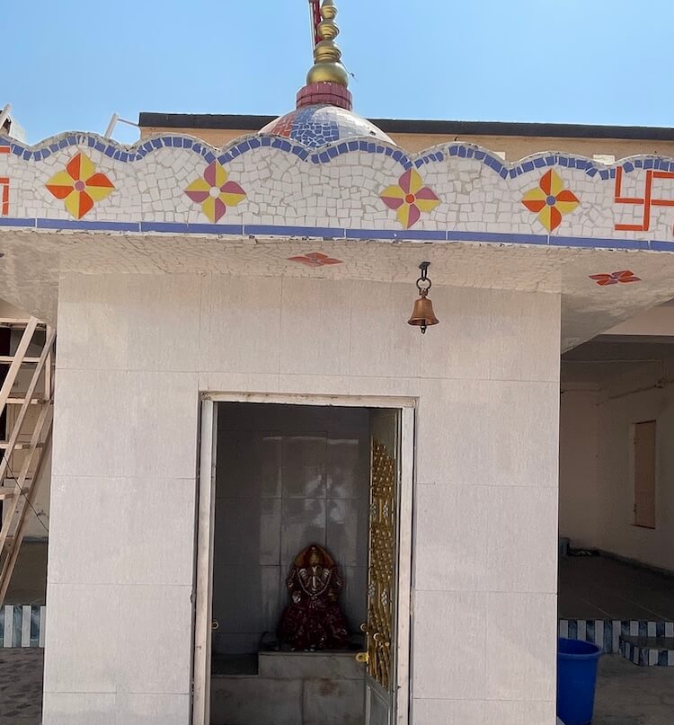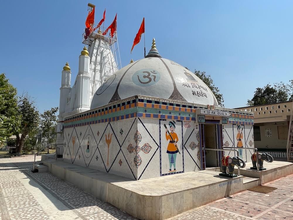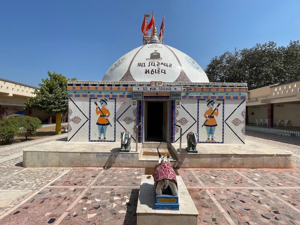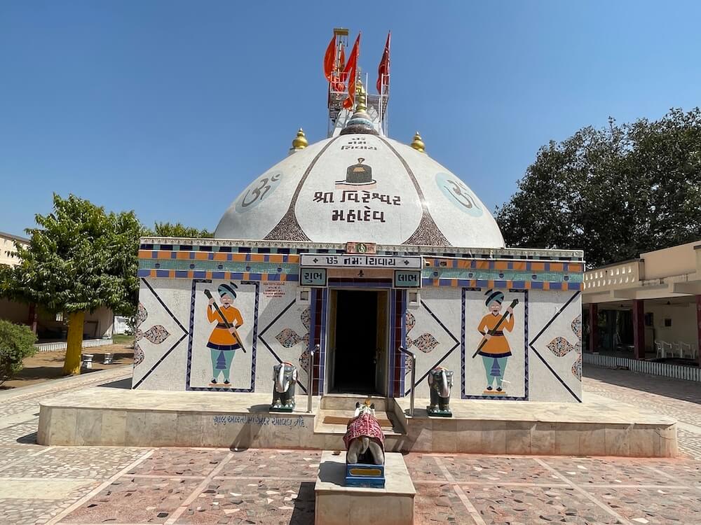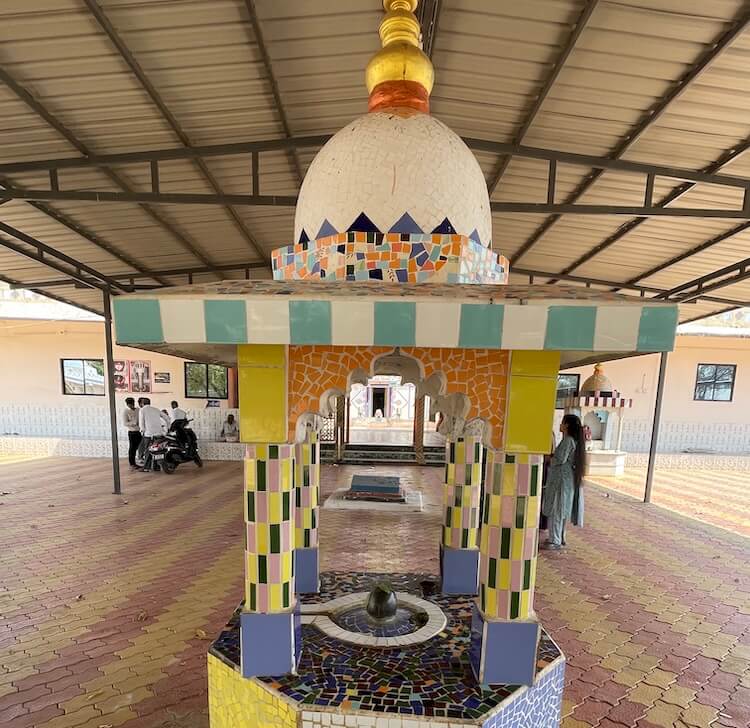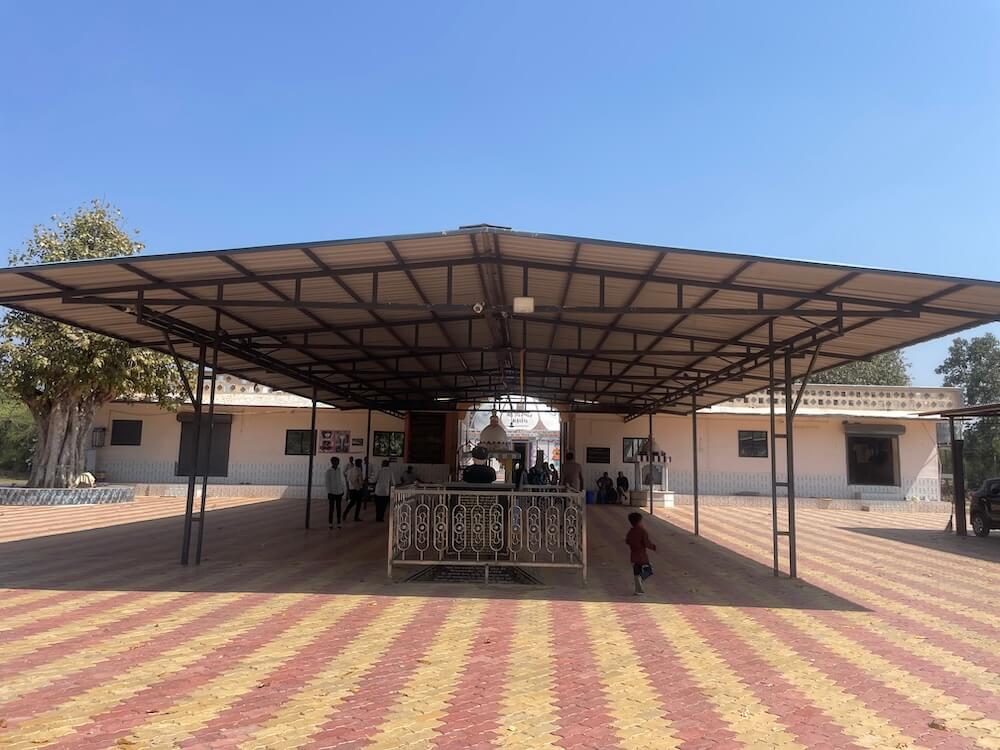 Upon entry, one arrives at a spacious courtyard paved with blocks, adorned with ‘Kadamba’ trees— which evoke memories of Shri Krishna— and an ancient well. The villagers maintain that the water in this well is ‘Akshay’ (inexhaustible). Fronting the temple is a ‘Rangmandap’ (porch) with a corrugated roof supported by iron pillars, housing a bust of the poet Shamal Bhatt. Within this porch, a ‘Shivpinda’ is enshrined beneath a four-pillared canopy topped with a Shikhara and Kalashs (finials). Besides this canopy, there is a ‘Yagnakunda’ (sacrificial fire pit). The premises also accommodate the priests’ residences, the temple office and a cultural hall.