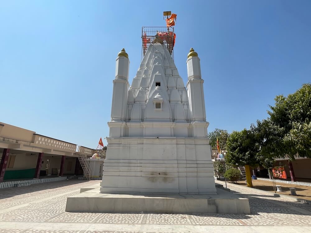 The exterior of the temple is equally refined. The domed roof of the Sabhamandap is topped with a ‘Stupika’ (pinnacle) and Kalasha. The four corners of the Garbhagriha roof are marked by subsidiary spires, each with an Amalaka (fluted disc) and Kalasha. The central Shikhara, rising between these four, is square-shaped and stepped in design, featuring niches with divine idols on all sides.