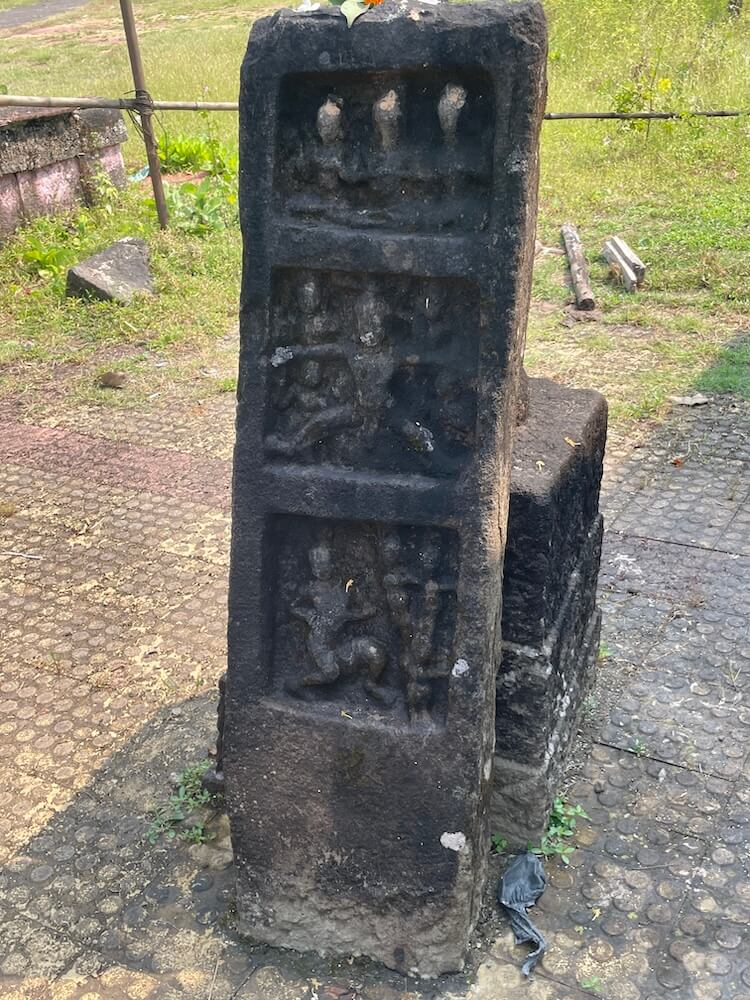 हे मंदिर गावाजवळ तलावाच्या काठावर आहे. मंदिरासमोरील मोकळ्या मैदानात पाषाणी चौथरा व चौथऱ्यावर दीपमाळा आहे. पाच थरांच्या चौकोनी दीपमाळेच्या शीर्षभागी वर्तुळाकार पट आहे. दीपमाळेजवळ प्राचीन विरगळ व तुलसी वृंदावन आहे. मंदिराचे प्रांगण मोकळ्या मैदानापेक्षा सुमारे सहा फूट खोल आहे व त्यात उतरण्यासाठी पायऱ्या आहेत. मंदिराच्या सभोवती पाषाणी आवारभिंत आहे. या भिंतीत अनेक प्राचीन विरगळ शिल्पे व शिलालेखपाषाण आहेत. प्रांगणात मंदिरासमोर काही वीरगळ स्तंभ व दगडी दीप आहेत.