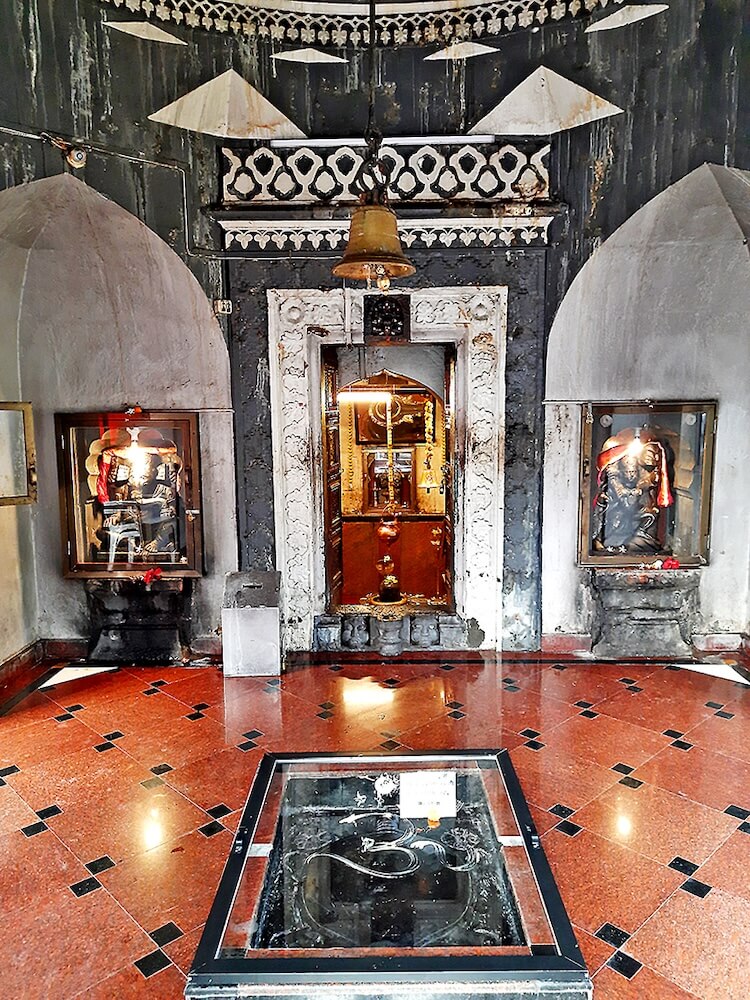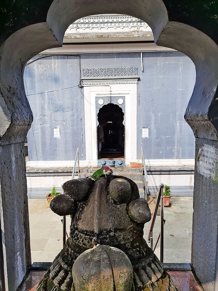 पाच पायऱ्या चढून उंच अधिष्ठानावर असलेल्या मंदिराच्या प्रवेशद्वारातून सभामंडपात प्रवेश होतो. कमानीदार प्रवेशद्वाराच्या खालच्या बाजुला दोन किर्तीमुखे आहेत. येथील सभामंडप बंदिस्त स्वरुपाचा आहे. पूर्वेकडील मुख्य प्रवेशद्वाराव्यतिरिक्त या सभामंडपाला उत्तर व दक्षिण दिशेलाही आणखी दोन दरवाजे आहेत. सभामंडपात मध्यभागी काळ्या पाषाणातील कासवमूर्ती आहे. या मूर्तीच्या चारही बाजूने पाषाणातच पुष्प कोरलेले आहेत. सभामंडपाच्या गोलाकार वितानावर जटिल नक्षीकाम आहे. गर्भगृहातील दर्शनी भिंतीवरील देवकोष्टकांत उजवीकडे गणेशाची आणि डावीकडे हनुमानाची मूर्ती आहे. या दोन्ही मूर्ती काळ्या पाषाणातील व सुबक आहेत. गर्भगृहाचे प्रवेशद्वार नक्षीकामाने सुशोभित आहे. प्रवेशद्वाराच्या द्वारशाखांवर पर्णफुलांची नक्षी आहे. उत्तरांगावर जाळीदार नक्षीकाम आहे. सभामंडपाच्या प्रवेशद्वाराप्रमाणेच या प्रवेशद्वारावरही खालच्या बाजुला दोन किर्तीमुखे आहेत.