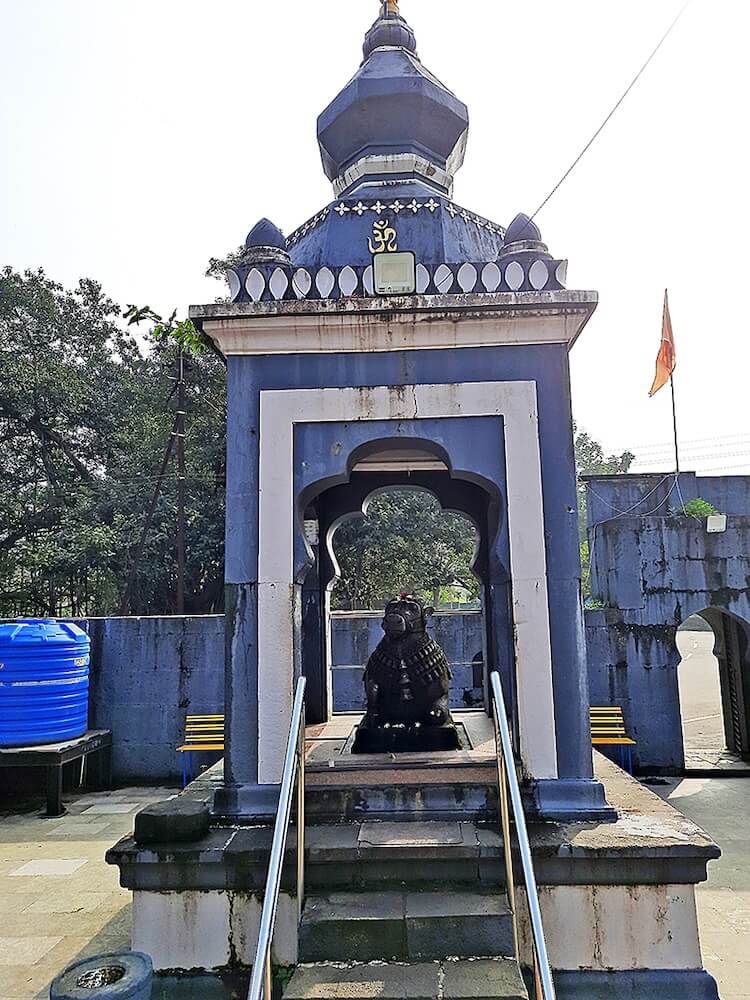 मंदिराचा आकार फार मोठा नसला तरी त्याची बांधणी अत्यंत सुबक आहे. चार फूट उंचीच्या अधिष्ठानावर असलेल्या या मंदिराची नंदीमंडप, सभामंडप व गर्भगृह अशी संरचना आहे. चार फूट उंचीच्या अधिष्ठानावर प्रदक्षिणा मार्ग सोडून आतील बाजूला चार दगडी स्तंभ असलेला नंदीमंडप आहे. या स्तंभांच्या मध्यभागी नंदीची अखंड काळ्या पाषाणातील वैशिष्ट्यपूर्ण कोरीव मूर्ती आहे. या नंदीचे पुढचे दोन्ही पाय दुमडलेले आहेत. मागचा डावा पाय त्याने पोटाखाली घेतला असून उजवा पाय गुडघ्यातून वाकवला आहे. त्याच्या अंगावर विविध अलंकार आहेत. गळ्यातून खांद्याच्या मागे बांधलेला तिनपदरी पट्टा आहे. त्यावर लहान घंटा ओवलेल्या दिसतात. या पट्ट्यावरील मुख्य तीन घंटा मोठ्या आकाराच्या आहेत. नंदीच्या कपाळावरही कोरीव नक्षीकाम आहे. नंदीमंडपातील चार स्तंभ एकमेकांना महिरपी कमानीच्या आकारांनी जोडलेले आहेत. त्यावरील भागात छतावर बाशिंगी कलाकुसर आहे. छतावर मुख्य शिखराच्या चारही बाजूने लहान लहान शिखरे आहेत.