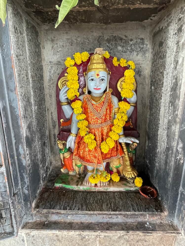 या मंदिरापासून जवळच नदीपात्रात नारद मुनींचे मंदिर आहे. या मंदिराबाबत अख्यायिका अशी की जेव्हा श्रीकृष्ण गोप-गोपिकांसोबत व गाई-वासरांसोबत सध्या जेथे विष्णूपद मंदिर आहे तेथे गोपालकाला करत असत. तेव्हा भगवंताची ही लिला पाहण्यासाठी नारदमुनी येथे येऊन बसत असत. याच स्थानावर नारद मुनींचे हे पाषाणी मंदिर आहे व त्यात ध्यानस्त नारदमुनींची मूर्ती आहे. अशी मान्यता आहे की आजही येथे देवदेवतांकडून गोपालकाला होत असतो व नारद मुनी ते येथून पाहतात.
