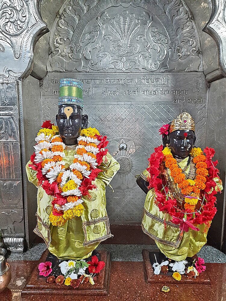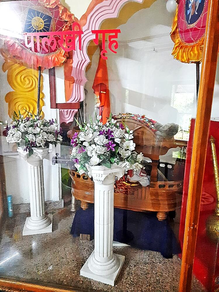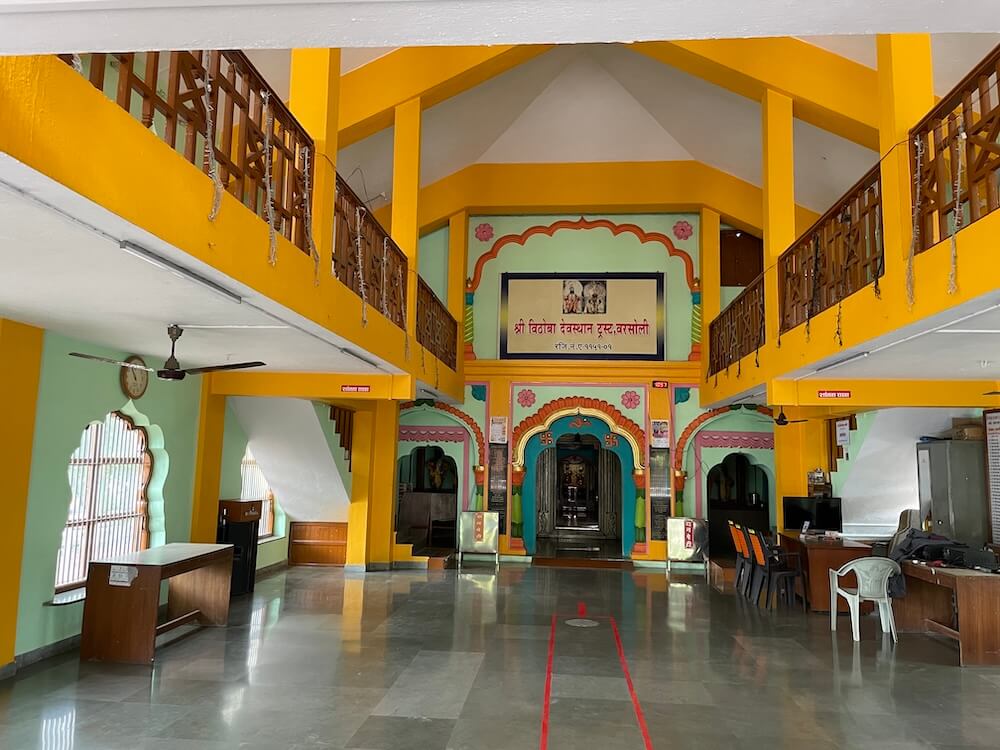 सभामंडपाच्या दुसऱ्या मजल्यावर सज्जा आहे. उत्सवप्रसंगी भाविकांना येथे बसता येते. अंतराळात डावीकडे गरुडखांब, पालखीकक्ष व शयनकक्ष आहेत. गरुडखांबावर हनुमंताची धातूमध्ये घडविलेली मूर्ती आहे. २४ फेब्रुवारी १७८९ रोजी काढलेले जुन्या मंदिराचे छायाचित्र येथील भिंतीवर लावलेले आहे. गर्भगृहाचे प्रवेशद्वार सुबक नक्षीकाम केलेल्या चांदीच्या पत्र्याने मढविलेले आहे. ललाटबिंबावर नृत्यगणेशाची मूर्ती कोरलेली आहे. गर्भगृहात उंच वज्रपिठावर काळ्या पाषाणातील विठ्ठल-रुक्मिणीच्या मूर्ती आहेत. नर्मदाबाई आंग्रे यांनी स्थापिलेल्या मूर्तींची झीज झाल्यामुळे २००८ साली मंदिराच्या जीर्णोद्धारावेळी पंढरपूरहून नव्या मूर्ती आणून त्यांची येथे प्रतिष्ठापना करण्यात आली. मंदिरातील मूळ मूर्ती सभामंडपात काचेच्या पेटीमध्ये सुरक्षित ठेवण्यात आलेल्या आहेत.