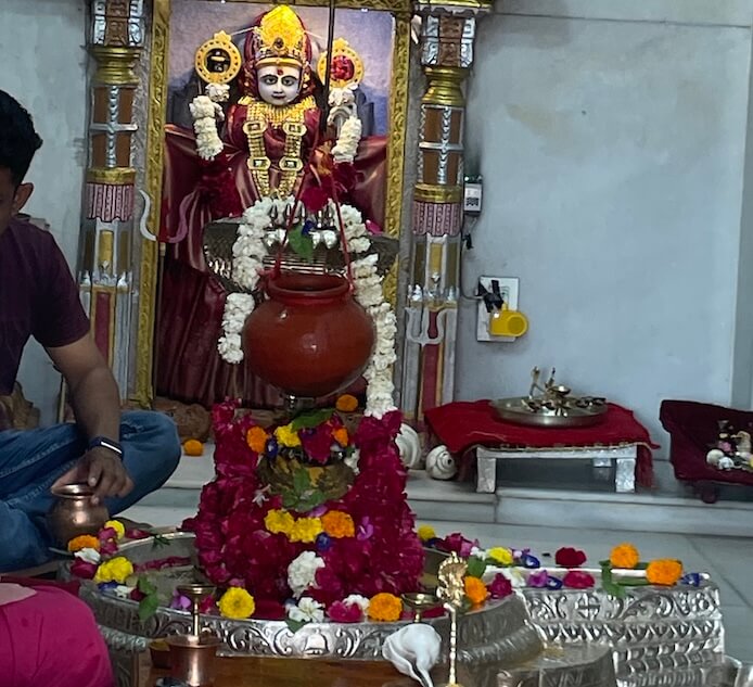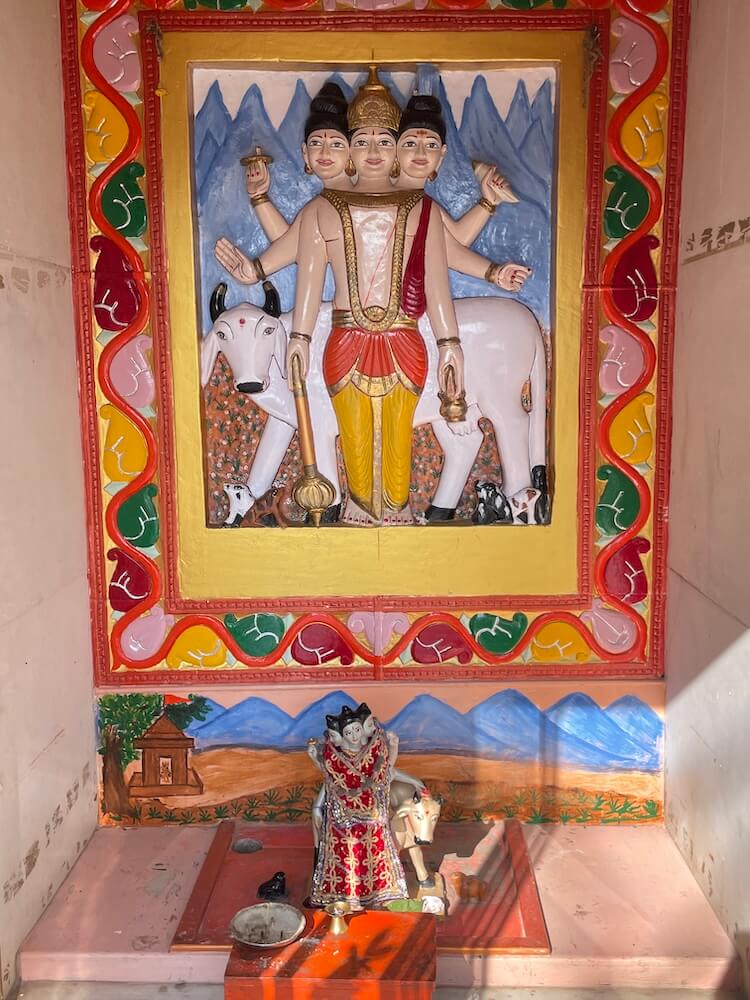 At the heart of the sanctum floor lies the grand ‘Pinda’ of Yavteshwar Mahadev, its ‘Shalunka’ (base) encased in finely engraved silver sheets. An ‘Abhishek-patra’ (vessel for ritual pouring) hangs from the ceiling above the ‘Shivpinda’ and a niche in the rear wall enshrines a serene idol of Mata Parvati. The sanctum is crowned by a soaring ‘Urushringa’ style spire, culminating in a double-tiered ‘Amalaka’ (fluted disc) and a ‘Kalasha’ (finial). A smaller shrine dedicated to Lord Dattatreya and a ‘Yagnashala’ (hall for fire rituals) also grace the temple precincts.