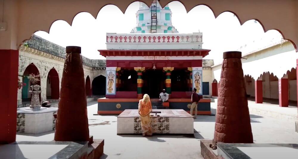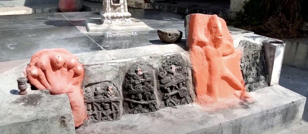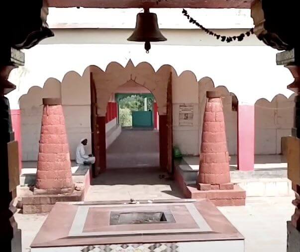 प्रांगणात ओवऱ्यांना लागून प्रवेशद्वाराच्या दोन्ही बाजूला दोन चौथरे व त्यावर बारा फूट उंचीच्या दीपमाळा आहेत. दीपमाळांच्या शीर्षभागी दीप प्रज्वलन करण्यासाठी वर्तुळाकार पाटे आहेत. प्रांगणात मंदिरासमोर चौथरा व त्यावर यज्ञकुंड आहे. या चौथऱ्याच्या डाव्या बाजूला असलेल्या दुसऱ्या चौथऱ्याच्या भिंतीत डावीकडे शेंदूरचर्चित पाचफणी नाग शिल्प व उजवीकडे मारूतीची मूर्ती आणि मध्यभागी प्राचीन विरगळ आहेत.