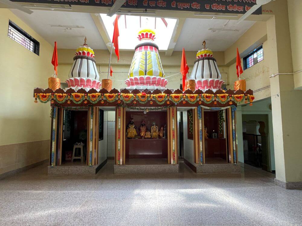 सभामंडपात झिपरू अण्णा महाराज यांची कृष्ण-धवल तसबीर लावलेली आहे. त्याच प्रमाणे येथे मुक्तानंद स्वामी आणि नित्यानंद महाराज यांच्या प्रतिमाही आहेत.